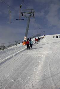 geneigten, breiten Piste. Auch der Schlepplift an der Kettingalm ist für