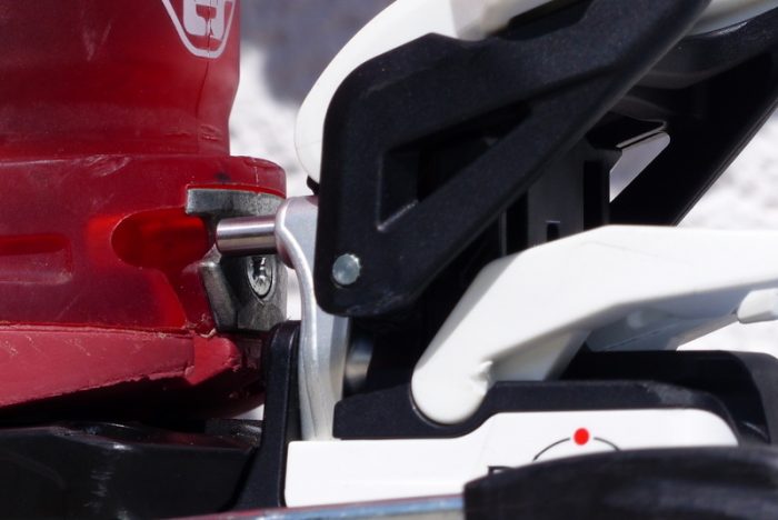 Pins vom Fersenautomat sitzen genau vor den Einsparungen der Sohle