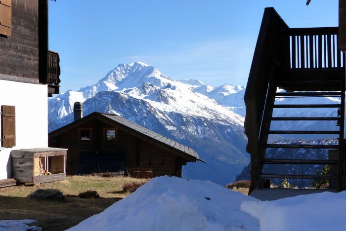 Blick von den Ferienhäusern auf die andere Seite des Rhonetales, hier Fletschhorn