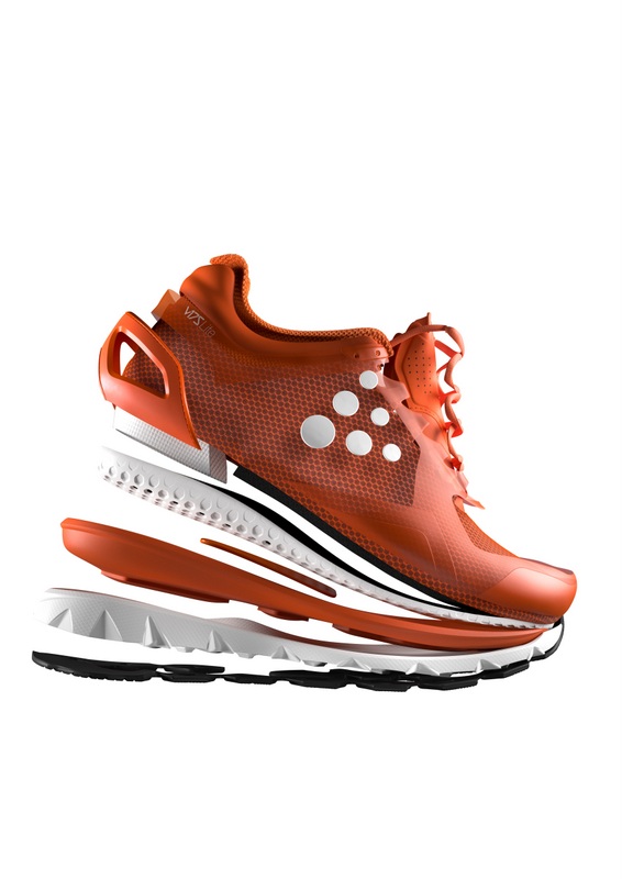 CRAFT_V-Serie_Aufbau_3D Zwischensohle besteht aus 2 EVA-Lagen unterschiedlicher Härte + Nylon-Mittelfußbrücke.