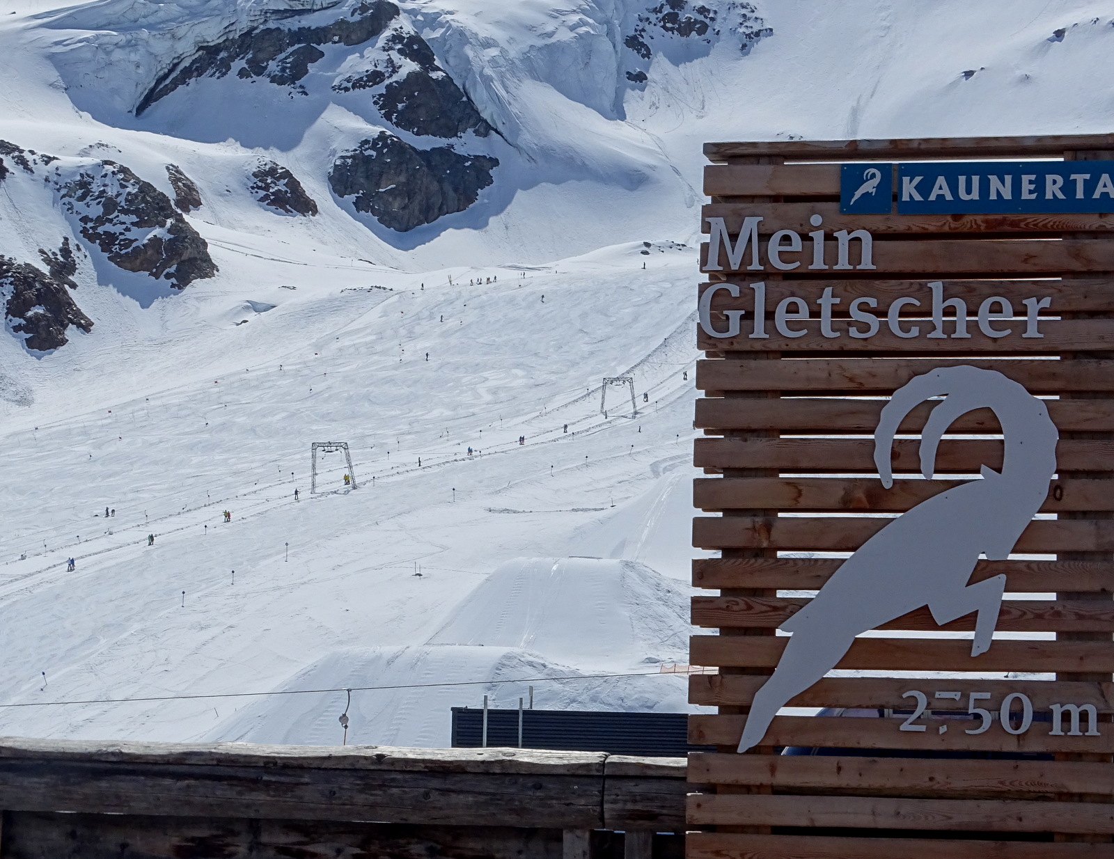Blick von der Terasse des Restaurants Weisssee auf den Nörderjoch Lift + Hang