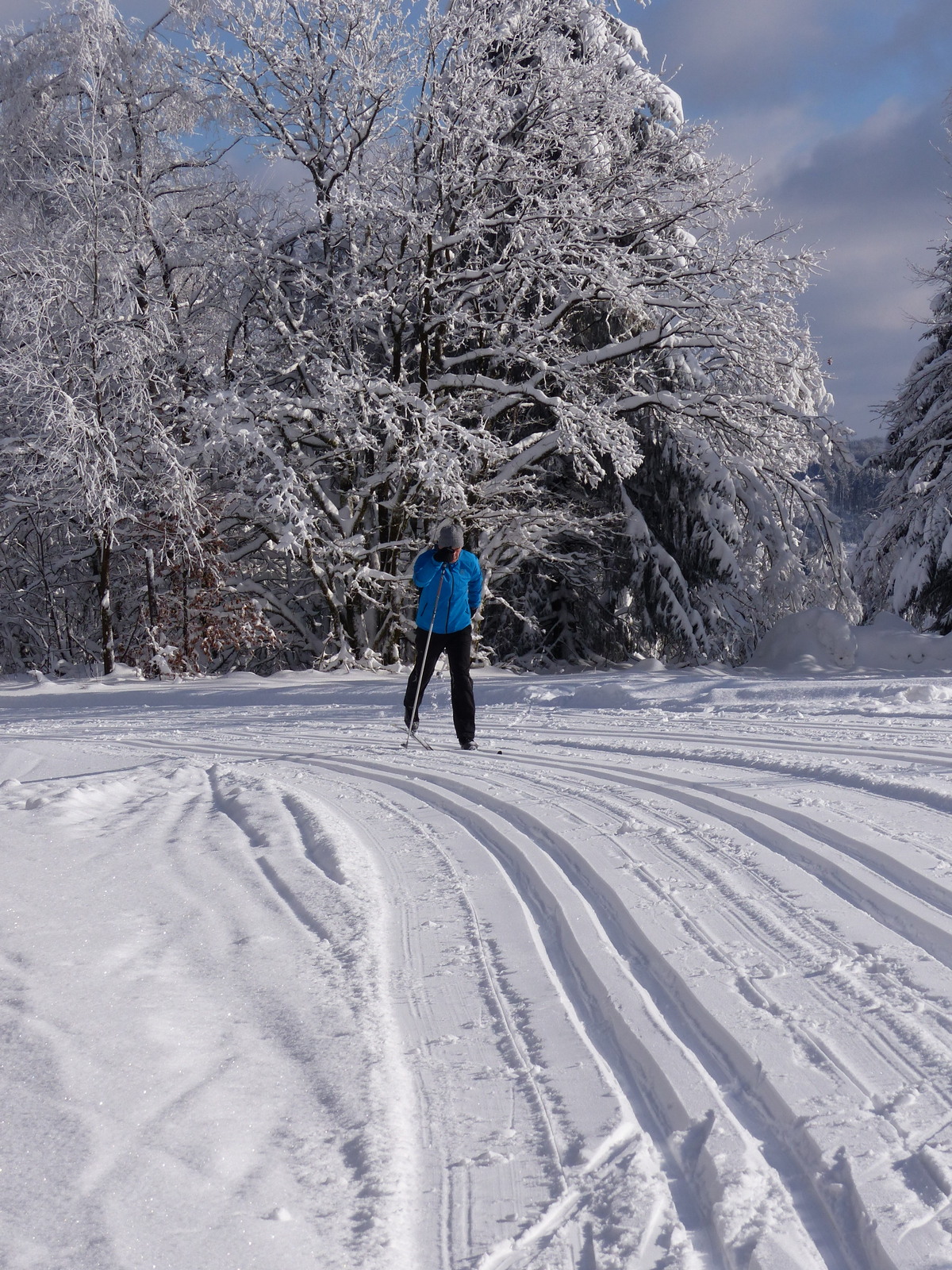In unserer Region und für den nicht ganz so leistungsorientierten Skiläufer bieten sich die etwas breiteren Cruiser-Ski mit sog. Nowaxbereich an; diese Ski sind relativ kurz, lassen sich also leicht und gut steuern und sie haben im mittleren Bereich des Belags eine Struktur – die sog. Nowaxzone, die einen Abdruck im Schnee erlaubt. Sie sind zwar nicht so schnell wie lange Wachsski, aber das Wachsen kann bei den jetzt bei uns üblichen Wintertemperaturen schnell zum Lotteriespiel werden. Ganz aktuell haben Fischer und Rossignol auch sehr sportliche Langlaufski mit integrierten Fellstreifen – Skin Modelle – auf den Markt gebracht, eine interessante Alternative zu den Wachsski.