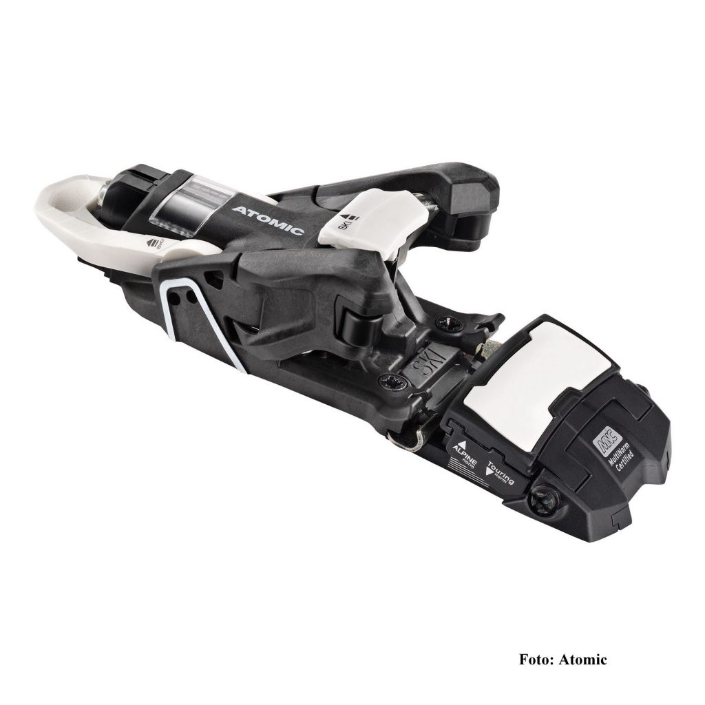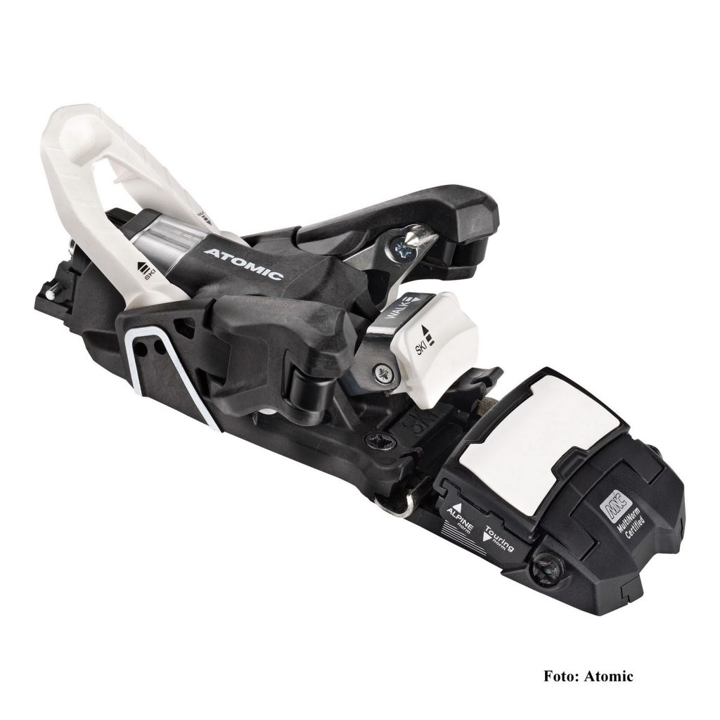 Zur Zeit gibt es 4 Bindungen, die die Pin-Technik vorn mit einem Fersenautomat kombinieren, wobei hier die Salomon Bindung S/Lab Shift MNC und die baugleiche Atomic Shift MNC vollwertige Hybrid-Bindungen sind; eine Pinbindung mit den spezifischen Stärken im Aufstieg und auch eine Alpin-Bindung mit den definierten Z-Werten bis 13 im Fersenautomat und auch mit dem klassischen Sohlenhalter + seitlich auslösenden Armen mit definierten und einstellbaren Z- Werten vorn. Beide Bindungen sind baugleich, beide Firmen gehören ja zum finnischen Armer Konzern und haben hier bei Forschung und Entwicklung gemeinsame Sache gemacht. Die anderen beiden Modelle – Fritschi Tectron und Marker KingPin – sind dagegen nur halbe Hybrid-Bindungen, die Pin-Technik vorn bleibt auch im Abfahrtsmodus aktiv. Der Unterschied macht sich natürlich einerseits in der Sicherheit bemerkbar, andererseits sind die Salomon und Atomic Bindungen dafür etwas schwerer.