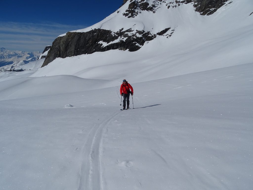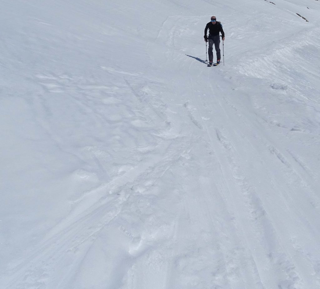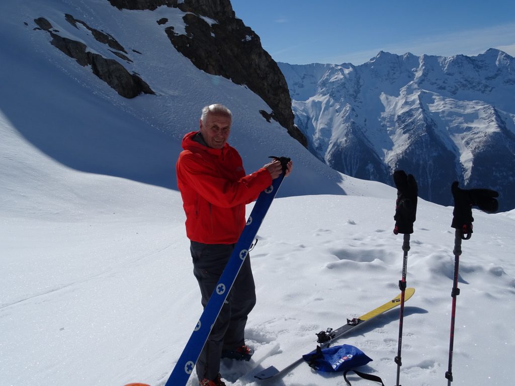 Nach der Anpassung kommt die Praxis: Der Schuh lässt sich im Walkmodus herrlich weit öffnen, trotz Flex 125 und 18° Vorlage ist das Anziehen wie mit Hausschuhen; ebenso locker, leicht und beweglich ist der Stiefel beim Aufstieg. Die oberen Schnallen bleiben im geöffneten Zustand eingehängt, das Power Strap wird gelockert und der Walkmechanismus erlaubt eine große Beweglichkeit im Sprunggelenk bei exakter Führung der Ski – zum Langlaufen fehlt nur das Gleiten nach dem Abstoß.