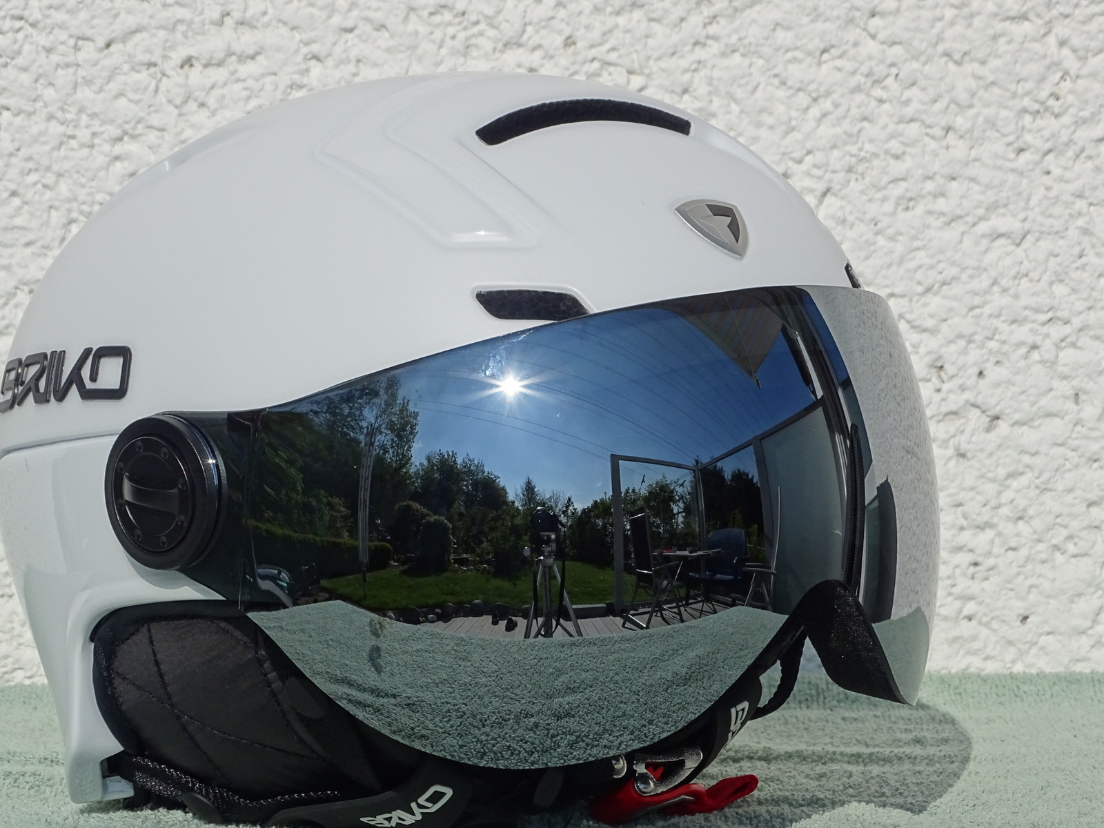Der BRIKO Helm Stromboli Visor Photo ist mit einem photochromatischem Visier ausge-stattet, das sich den Lichtverhältnissen anpasst, also die „Photo“ Version kaufen. Der Helm ist relativ leicht, mit abnehmbaren Ohrenpolstern und das Visier lässt genügend Platz für eine Brille – auch beim Zu- und Aufklappen.