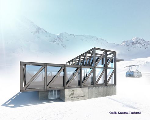 Die Bahn ist als „Schau-Seilbahn“ konzipiert: Schlichte und hochwertige Architektur mit vielen Glaselementen gewährt Einblicke in die dahinterliegende Seilbahntechnik. Die Stationen gliedern sich harmonisch in die umliegende Landschaft ein“. (Kaunertal Tourismus)