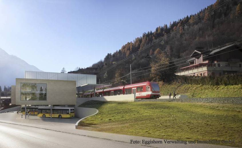 Von Fiesch im Schweizer Wallis sollen Wintersportler zukünftig komfortabler in die Aletsch-Arena kommen; hier wird eine neuer Bahnhof mit integrierter Seilbahnstation eingeweiht. Wer mit der Matterhorn-Gotthard-Bahn dort ankommt, kann direkt in die Gondeln der neuen Seilbahn zur Fiescheralp einsteigen. Der sog. ÖV-Hub vereint Zug- und Busterminal mit neuer Seilbahn – Investitionssumme: Rund 45 Millionen Schweizer Franken!