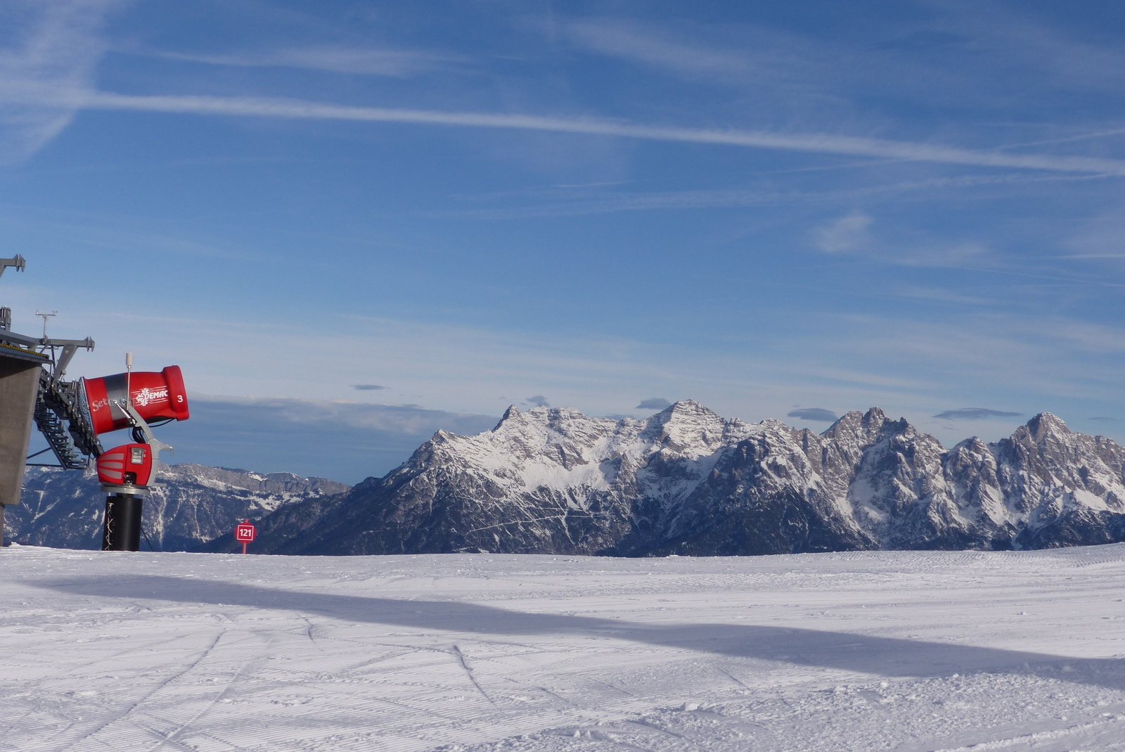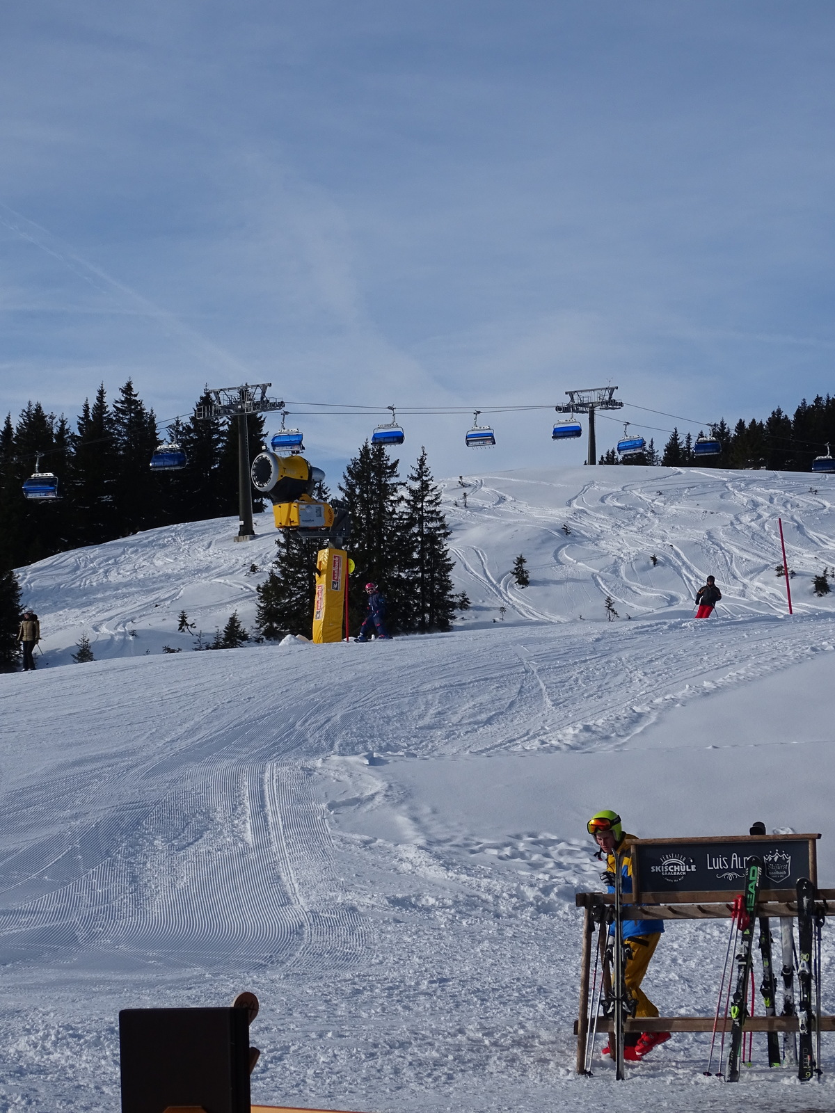 Klar, in der absoluten Hochsaison zwischen Weihnachten und Neujahr und um Fasching ist hier sicherlich sehr viel Betrieb, aber jetzt Mitte Dezember hielt sich der Andrang in Grenzen; lange Abfahrten mit viel Platz, moderne Beförderungsanlagen, gemütliche Hütten und immer wieder tolle Aussichtspunkte – Skifahren zum Genießen. Insgesamt ist das Pistenangebot im Gebiet Saalbach-Hinterglemm-Leogang-Fieberbrunn schon gigantisch; sehr schöne Abfahrten, breit, sehr gut präpariert und abwechselungsreich geführt. Jetzt Mitte Dezember lag nicht besonders viel Naturschnee, die Abfahrten bis in die Talorte Vorderglemm, Saalbach, Hinterglemm, Leogang und Fieberbrunn waren trotzdem durchweg top zu fahren; immerhin jeweils rund 1000 Höhenmeter und das in einer so großen Anzahl, dass man an einem Skitag keine Abfahrt doppelt fahren muss!