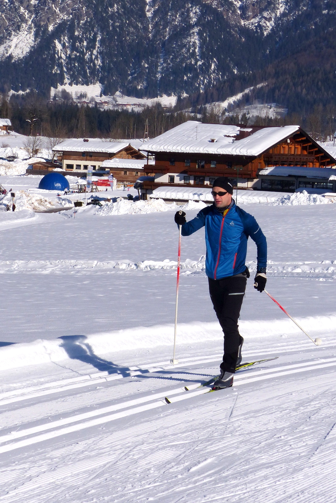 Das Pillerseetal wirbt zwar mit dem Titel „schneesicherste Region in ganz Tirol“, jetzt Mitte Dezember lag aber trotzdem in den unteren Lagen bei St. Ulrich und St. Jakob in Haus nicht genug Schnee für Langlauf, wir mussten in das höher gelegene Hochfilzen ausweichen, um neue Langlaufski – Skin-Ski von Rossignol – zu testen.