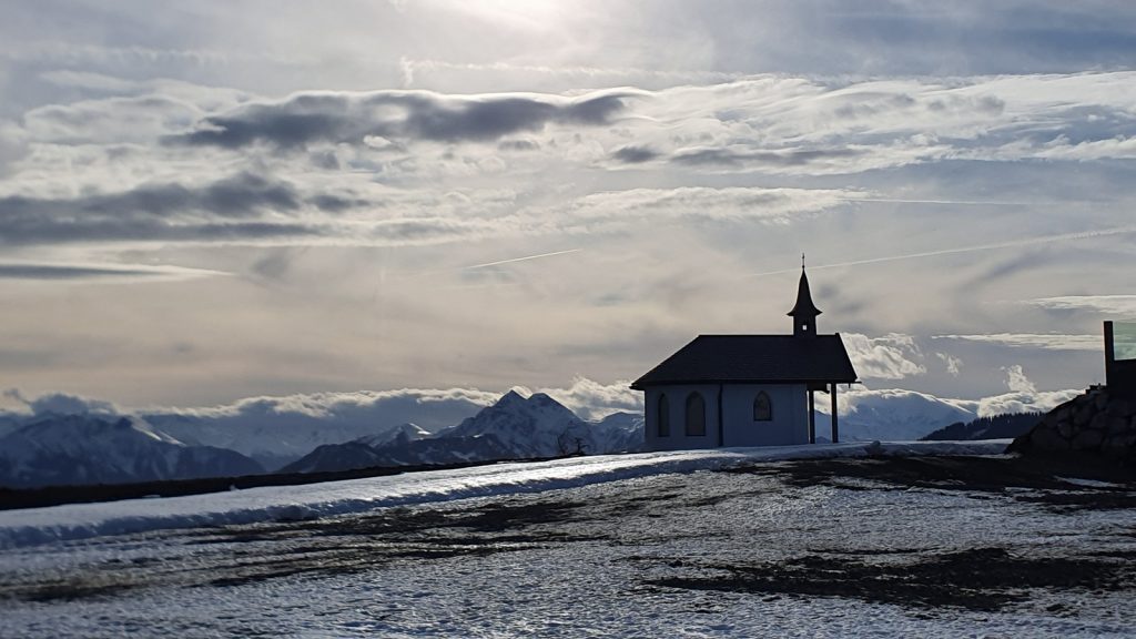 Fotopint auf dem Gahübel mit Kapelle Panorama-Abfahrt nach Hintermoos