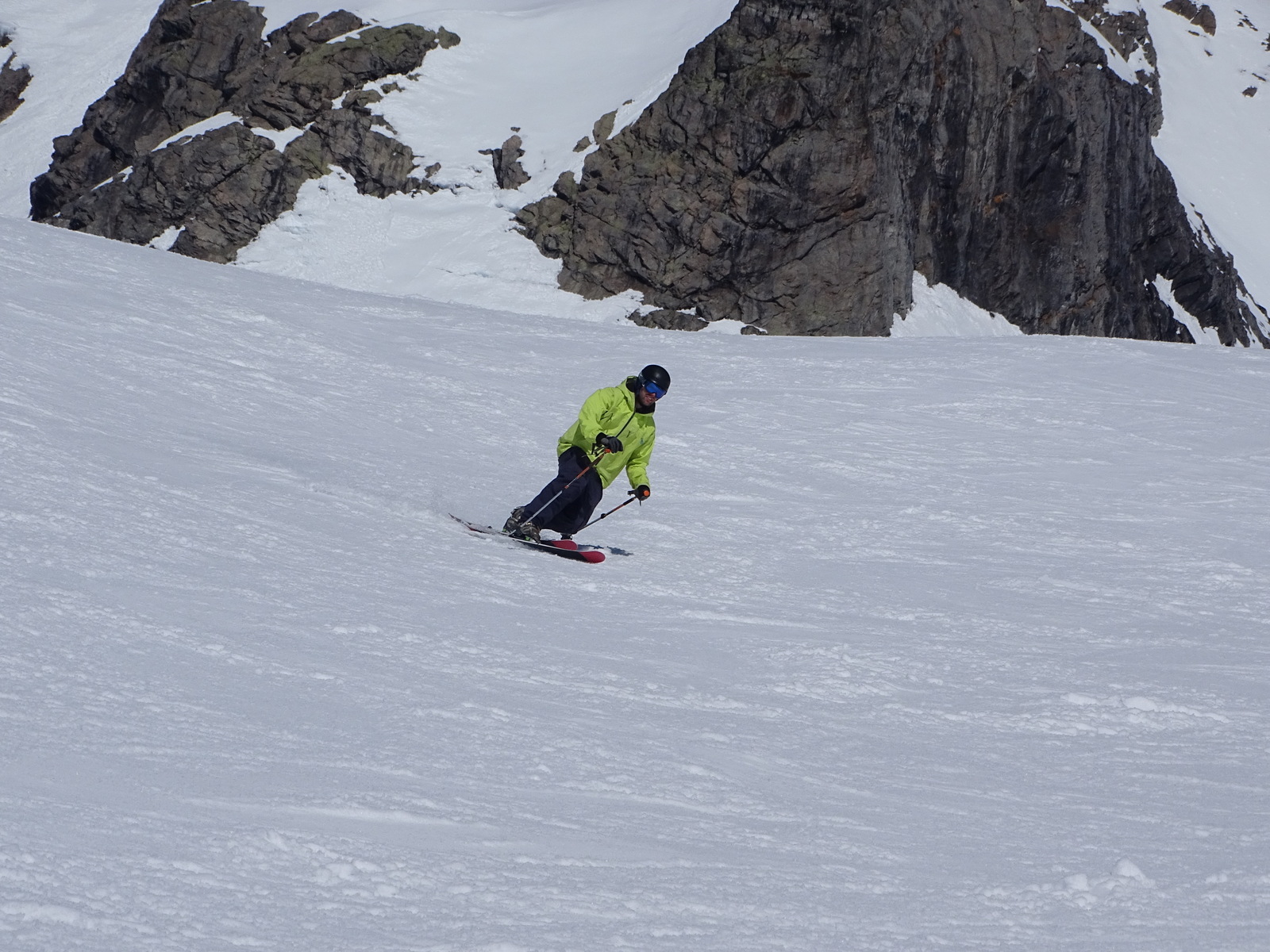 für die schwarze Grünsee-Abfahrt zu wenig Naturschnee, gemütliche