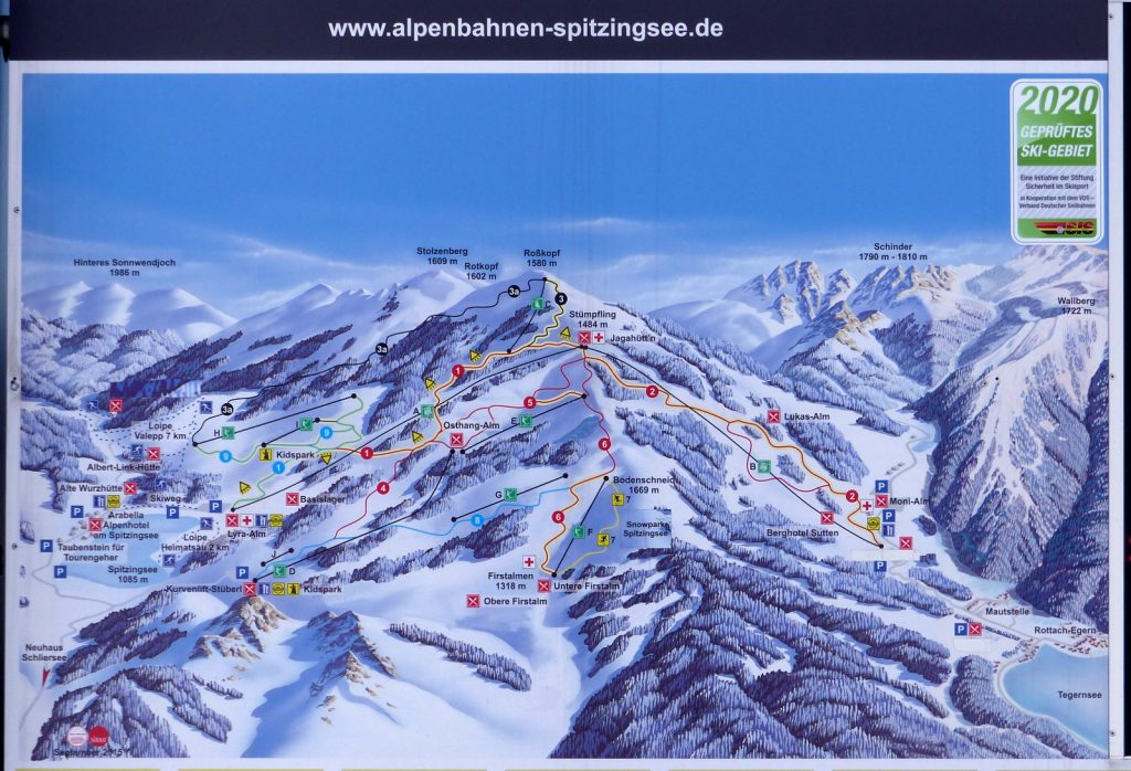 In unmittelbarer Nachbarschaft zum wunderschönen Spitzingsee befindet sich das Skigebiet Spitzingsee-Tegernsee. Wie der Name bereits vermuten lässt, verbindet das beliebte Wintersportparadies rund um die Berge Stümpfling und Roßkopf die beiden malerischen Täler miteinander. Am Spitzingsee starten Kurvenlift oder Stümpfling-4er-Sesselbahn, .. von Rottach-Egern aus führt eine Mautstraße zu Talstation der Sutten-4er-Sesselbahn. Beschneiungsanlagen sorgen für Schneesicherheit, leistungsstarke Liftanlagen für geringe Wartezeiten an den Liften. Rund um den Stümpfling erwarten Sie auf 1.100 bis 1.600 Metern auf insgesamt 20 km Pisten vor allem mittelschwere Abfahrten, die besonders bei Familien …. sehr beliebt sind. Könner finden am Roßkopf ihr Eldorado, wo die kurze aber knackige Roßkopfabfahrt oder die lange anspruchsvolle Grünsee-Abfahrt warten. Durch den Neubau der Roßkopf-Sesselbahn vor drei Jahren hat die Grünsee-Abfahrt (allerdings nicht beschneit), die sich vom Roßkopf-Gipfel auf 1.543 Metern als schwarze Herausforderung bis hinunter in die Valepp zieht und damit gut 500 Höhenmeter überwindet, neuen Aufschwung erfahren und erfreut die Herzen anspruchsvoller Wintersportler.