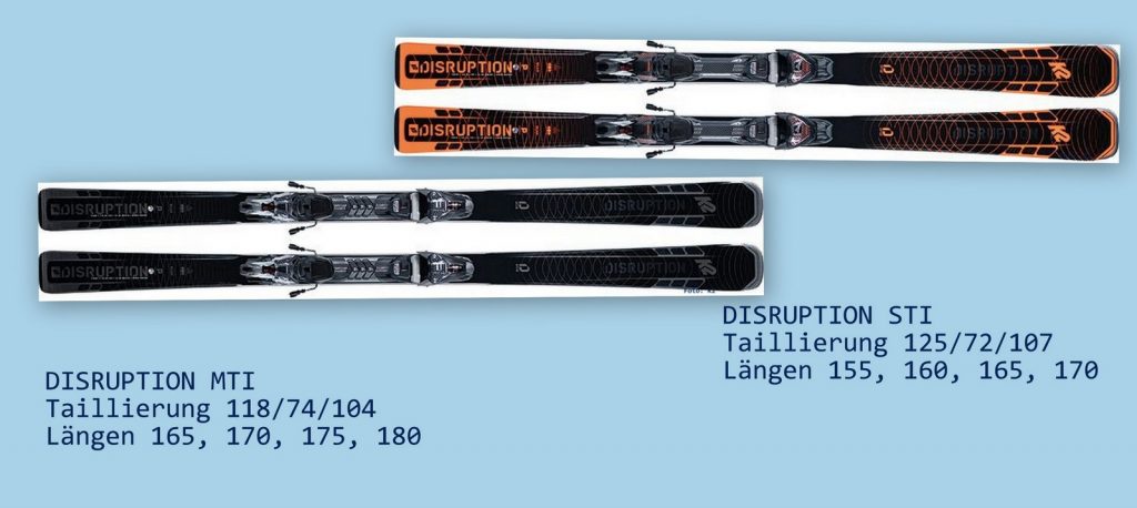 Passend zu dieser neuen Skistiefel-Serie von K2 gibt es auch eine neue Pisten-Ski Serie: DISRUPTION, hightech Pistenski mit starker Taillierung, einem leichten Pistenrocker, Dark Matter Damping (DMD) Dämpfungs-Technologie, einem leichter Pistenrocker, Aspen-Holz Kern und Titanal- oder Carbon-Einlage. Die zugehörige neue Damenski-Serie: DISRUPTION ALLIANZ
