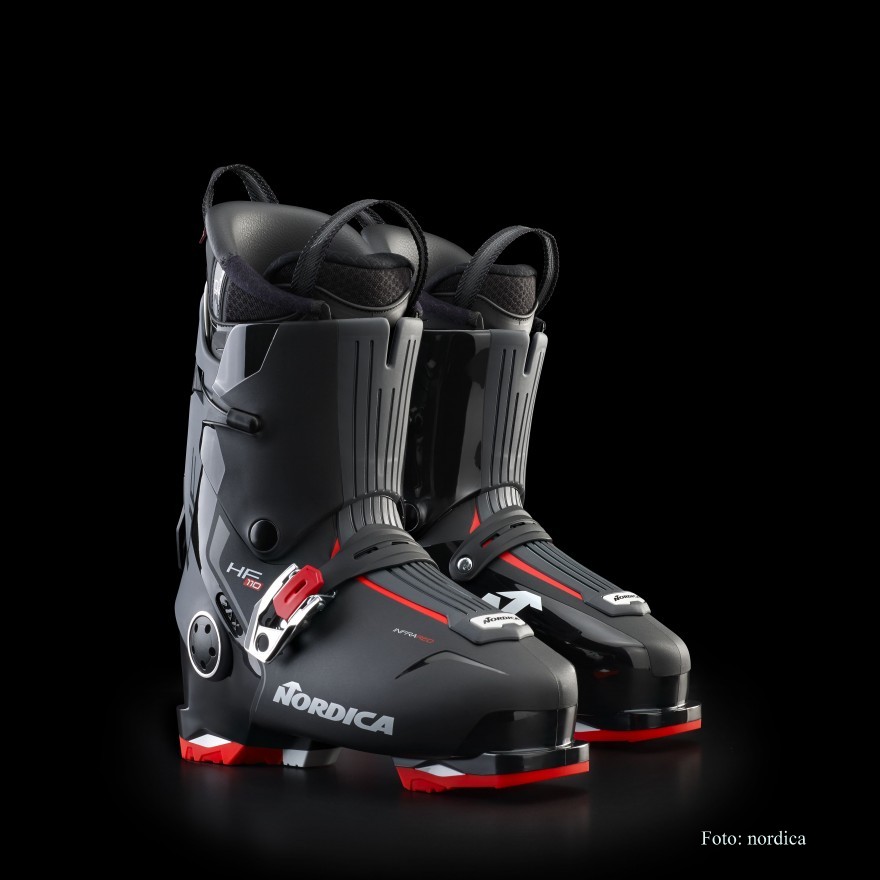 Für uns ist also die Konstruktion der HF Skischuhe von Nordica nicht ganz so revolutionär wie für Nordicat; trotzdem sind die HF Skischuhe modern, hoch funktional, bequem und in ihrer Konstruktion schon etwas besonderes. Mit INFRARED TECHNOLOGY für eine einfache und schnelle Anpassung der Schale, 3D CUSTOM Kork Innenschuh +thermisch anpassbar und Michelin Grip Walk Sohle ist er mit vielversprechenden Features ausgestattet, und die weite Öffnung der Schale um 40° erlaubt einen ganz lockeren Einstieg. Den Schuh gibt es in der Herrenversion mit Flexindex 110 und in der Damenversion mit 85 – UVP 469,95 €.