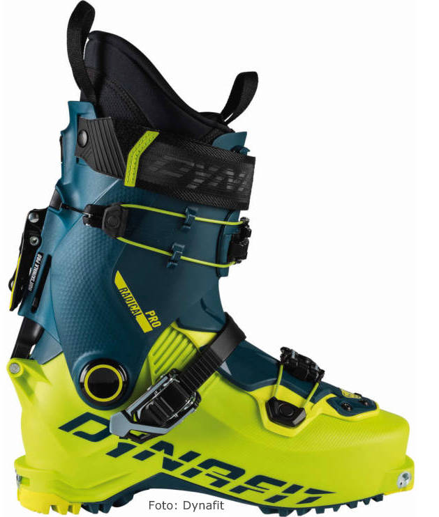 Mit dem „Radical Pro“ präsentiert Dynafit einen komfortablen Skitourenschuh, der mit Blick auf sein geringes Gewicht sowie seine hohe Abfahrtsstabilität klar im Premiumsegment liegt. Dank einem neuen Bootfitting-Konzept mit optimierter Zungenkonstruktion und dem Einsatz des prämierten Hoji-Lock-Systems verspricht der Schuh eine gelungene Balance zwischen Aufstiegs- und Abfahrtskomfort. Es ist mit allen gängigen Pin-Bindungen kompatibel und kann auch mit Rahmen- oder Hybridbindungen zum Einsatz kommen.