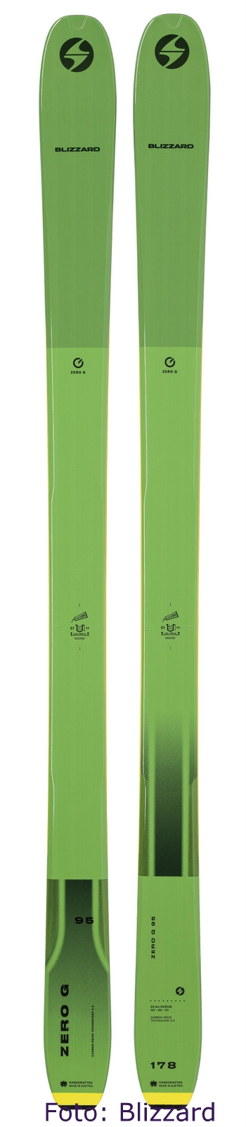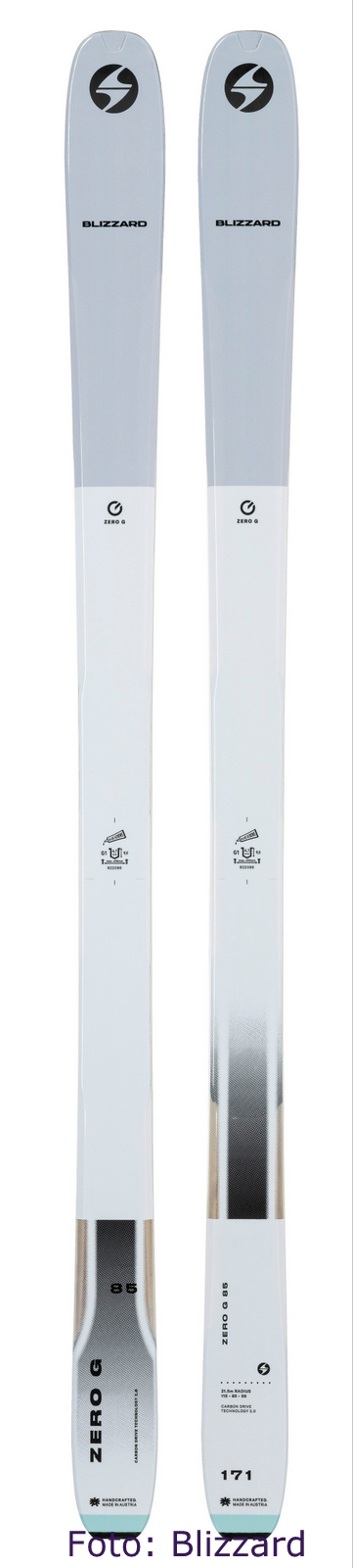 Blizzard hat die Touring-Kollektion ZERO G überarbeitet. Den Ski gibt es nach wie vor in 3 Mittelbreiten- 85, 95, 105 mm und dann noch das Wettkampfmodell – nur in 161cm, 98-65-78 mm Taillierung! Die Ski sind noch etwas leichter geworden, Modell ZERO G 085 wiegt in der Länge 164cm nur noch knapp 1000g!