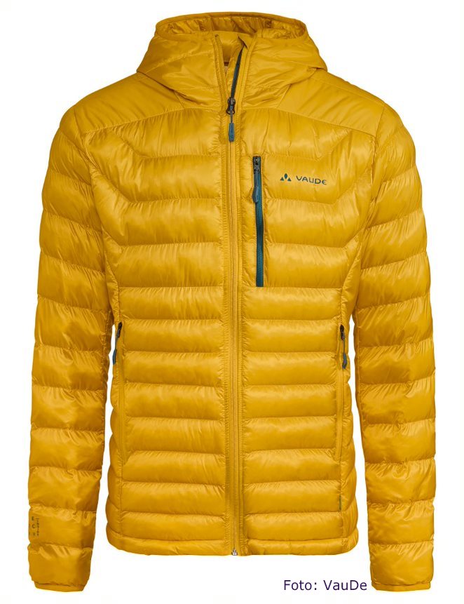 Batura Hooded Insulation Jacket Vegane Daune, sieht aus wie Daune, ist aber keine! HeatSphere Eco. So heißt das innovative Isolationsmaterial. Das bauschige Füllmaterial hat die gleichen Eigenschaften einer Daune, ist jedoch vollständig aus recyceltem Material hergestellt. Diese synthetische Daune hat den Vorteil, dass sie auch im nassen Zustand wärmt und relativ pflegeleicht ist. Diese isolierenden Bällchen werden wie auch bei Daune üblich in Kammern eingenäht, um einen hohen Loft und beste Wärmeergebnisse zu erzielen. Die Jacke kann in der elastischen Netz-Innentasche klein verpackt werden.