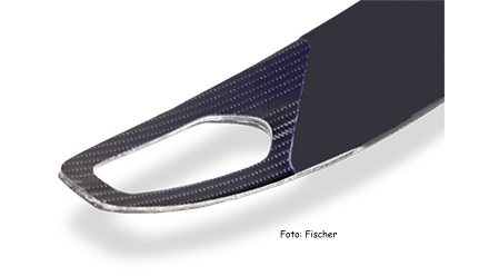 Hole Ski Tip: Skatingkonstruktion aus Spezialmaterial zur Reduzierung der Masse in der Spitze. Weniger Kraftaufwand dank reduzierter Pendelbewegung.