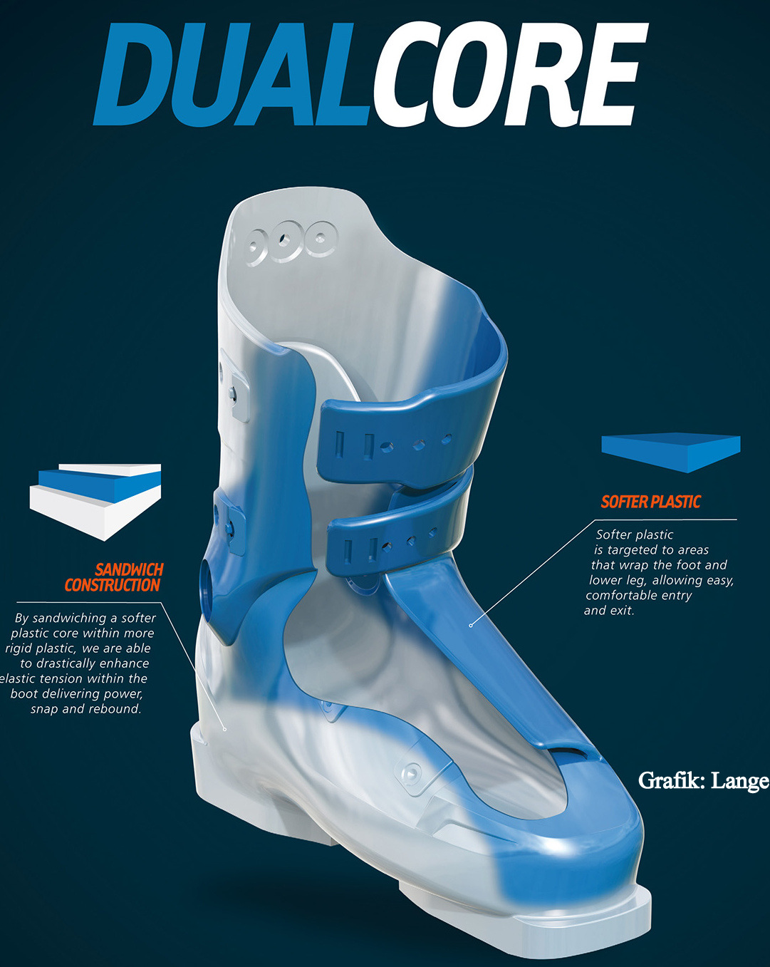 Dual Core Light – eine leichtere Version unserer innovativen Dual Core-Technologie. Wenn Du skifährst und Dich in Deinen Schuhen bewegst, zieht sich DUAL CORE LIGHT aktiv zusammen und dehnt sich aus. Die Schale besteht im Fußteil aus 2 miteinander in Sandwichbauweise verbundenen Matrialien unterschiedlicher Härte.