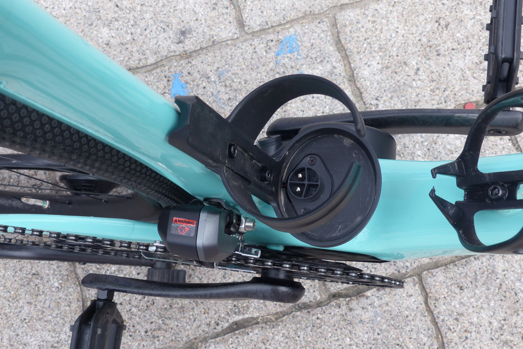 Einen anderen Weg geht Merida, bei dem Modell eSilex ist der Akku fest im Rahmen verbaut, der Motor sitzt in der Hinterradnabe – MAHLE ebikemotion X35+ Antriebs- und Akkusystem, Motor 40 Nm, Akku 250 Wh, Systemgewicht 3,5 kg. Das System kann bei Bedarf mit einem Range Extender Akku, der in Form einer Trinkflasche am Rahmen befestigt wird, um 208 Wh ergänzt werden. Interessant ist bei diesem Modell auch der Preis! Er liegt mit UVP 2999,- etwa 1000,- niedriger als der Preis der Modelle mit gleicher Akku-Leistung, aber abnehmbarer Antriebseinheit ( Fazua ).