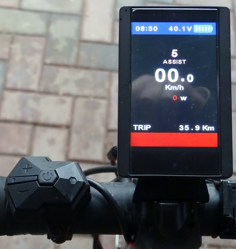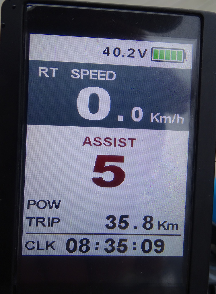Angaben über die Unterstützungsstärke gibt es wie gesagt von C.B.T. Italia nicht, auf jeden Fall ist die Unterstützung durch den Motor ganz offensichtlich in der jeweiligen Unterstützungsstufe konstant. Der im Display angezeigte Wert von 270W und mehr in der Unterstützungsstufe 5 ist allerdings unserer Meinung nach auch zu hoch; der Schub durch den Motor ist hier deutlich geringer als z. B. bei dem Boschmotor Performance Line CX oder dem Shimano EP8. ?? Es bleibt hier also eine ziemlich große Unsicherheit.