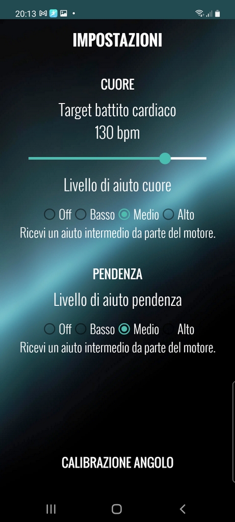 Darüber hinaus kann ich aber auch die Motorunterstützung mit dem Neigungswinkel, also der gefahrenen Steigung, koppeln; je steiler umso mehr Motorunterstützung. Auch hier kann ich zwischen den Unterstützungsstufen Basso, Medio, Alto wählen.