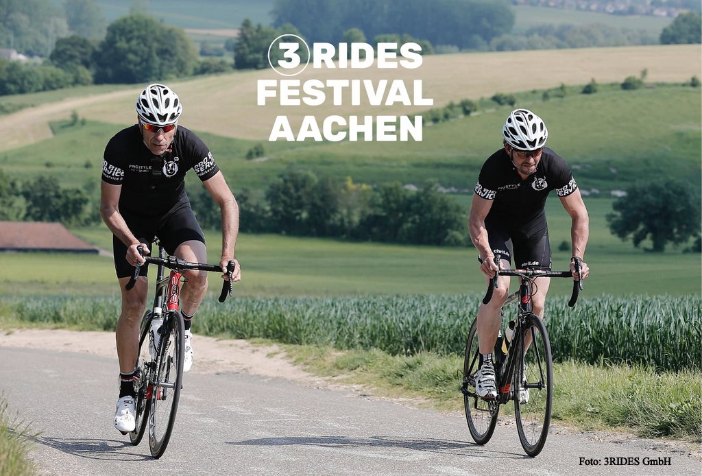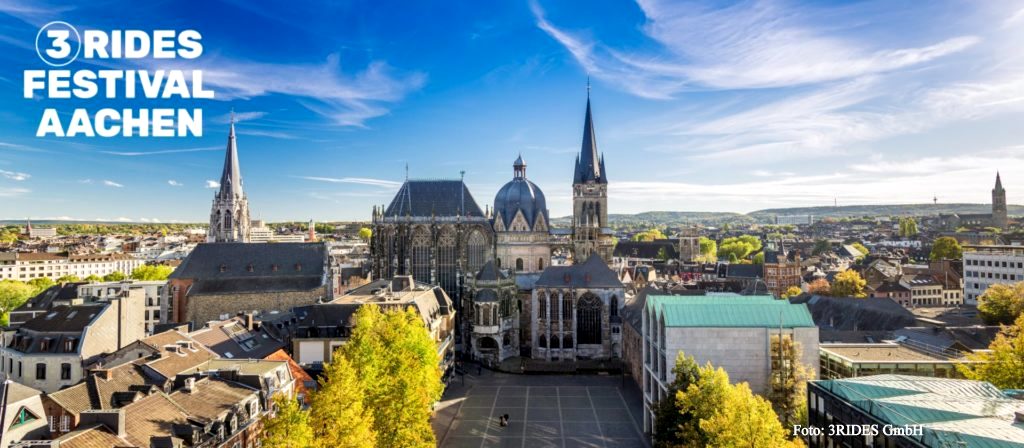„Vom 13. bis 15. Mai 2022 feiert das 3RIDES Festival auf dem Aachener CHIO-Gelände Premiere. Mit einer bis dato einzigartigen Mischung aus Bike Expo, zahlreichen Workshops rings um Fahrrad oder E-Bike, Bühnen-Life-Acts und kulinarischen Highlights wird Fahrradkultur bis in die benachbarten Länder Belgien und die Niederlande gefeiert. Auf insgesamt sieben abwechslungsreichen Streckenverläufen kommen im Umland daher sowohl Genussfahrer als auch ambitionierte Freizeitsportler auf ihre Kosten. … „Auf den neuesten Rädern seiner Lieblingsmarken die malerischen Strecken der Region erkunden, sich auf dem Food Market stärken, an Workshops und Sport-Challenges teilnehmen und vor der Festival-Bühne gemeinsam feiern: Mit einer europaweit einzigartigen Mischung von Angeboten rund ums Fahrrad debütiert das 3RIDES-Festival vom 13. bis 15. Mai 2022 im Dreiländereck Aachen. Über 35.000 Fahrrad-Fans werden auf dem Open-Air-Gelände des CHIO Aachen erwartet, um mehr als 1000 Bike-Neuheiten von über 150 Marken vor Ort zu testen – von E-Bikes über Urban und Gravel Bikes bis hin zu Road Bikes. … Mit der Expo, mit Sport- und Charity-Events, Entertainment und kulinarischen Angeboten möchten wir mit der ganzen Familie das Fahrrad feiern“, erklärt Björn Müller, Geschäftsführer der veranstaltenden 3RIDES GmbH.“