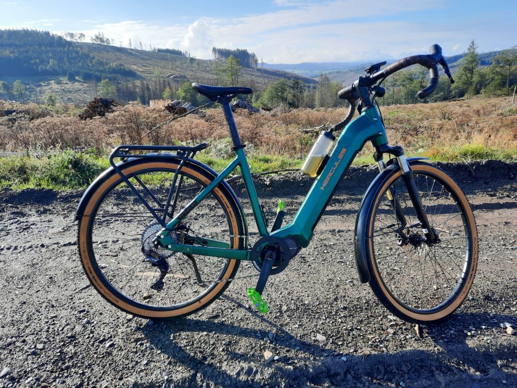 Hercules ESISON GR1 – 11, ausgestattet mit dem leistungsstarken leShimano Steps EP8 Motor mit 85Nm + Simplo Intube Akku mit 630 Wh, Shimano GRX Gruppe 1/11 fach, SR SUNTOUR NCX32, 63 mm Federweg, luftgefedert, Lockout, 15 mm Steckachse, vorn und hinten 180 mm Bremsscheiben, SCHWALBE G-ONE Bite, Performance, 50-622, Beleuchtung, Schutzbleche, Gepäckträger. UVP 4699,- €