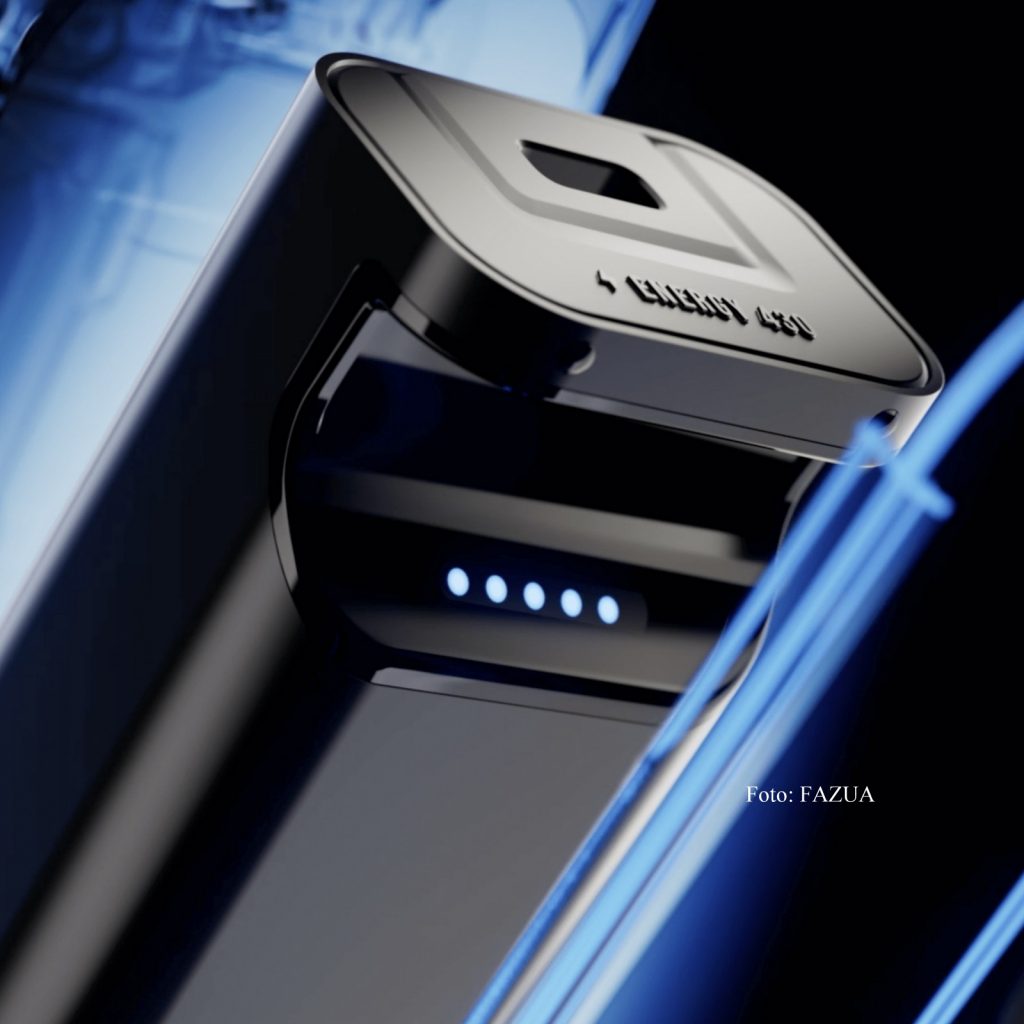 ENERGY 430, Gewicht 2,30 kg, Akkukapazität 430 Wh, beim Bewegen des Fahrrads schaltet sich der Akku automatisch ein. Der integrierte Griff und der intuitive Verschluss machen das Handling easy.Je nach Bike-Hersteller ist die FAZUA ENERGY 430 entnehmbar oder fest verbaut.