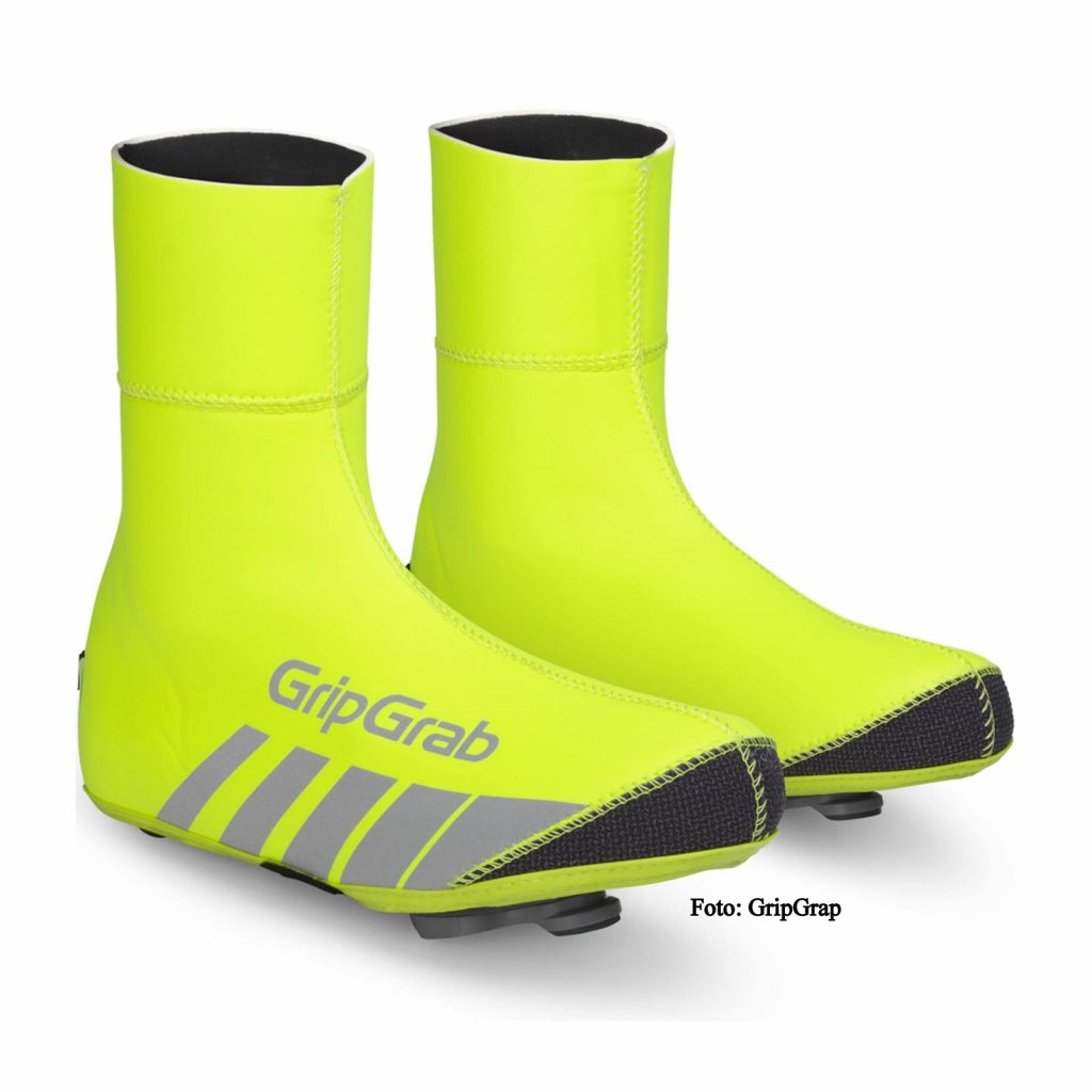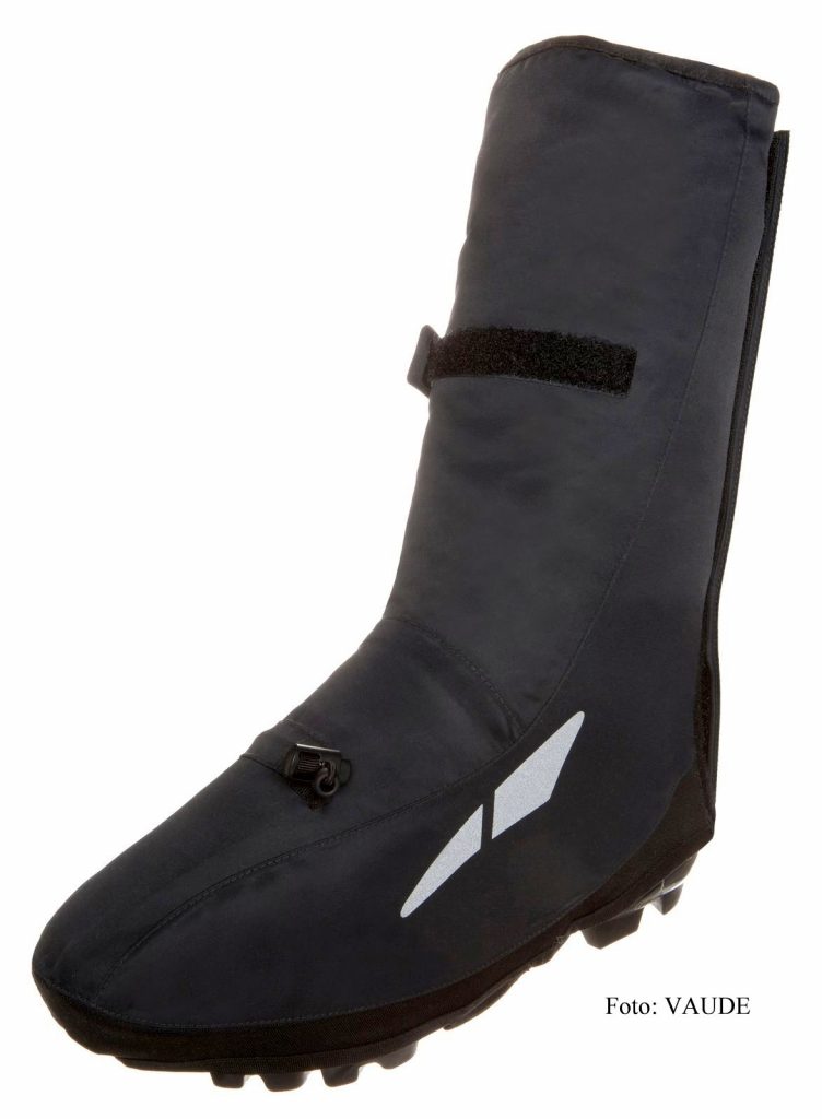 Neben oder auch zusätzlich zu Winterschuhen schützen Überschuhe vor Wind, Regen und Kälte, es gibt winddichte Varianten, solche die 100% wasserdicht sind und natürlich auch isolierte Überschuhe für besonders kalte Radtage. Sie werden über die Schuhe gezogen, haben eine offenen Sohle und werden in der Regel an der Rückseite mit einem Klettband oder Reißverschluss geschlossen. Wenn es um einen Kälteschutz geht, dann sollten die Überschuhe mindestens winddicht und durch aufgerautes Innenmaterial oder sogar Primaloft-Futter gut isolierend sein. Sie müssen auf jeden Fall gut passen, der Klettverschluss muss komplett schließen.