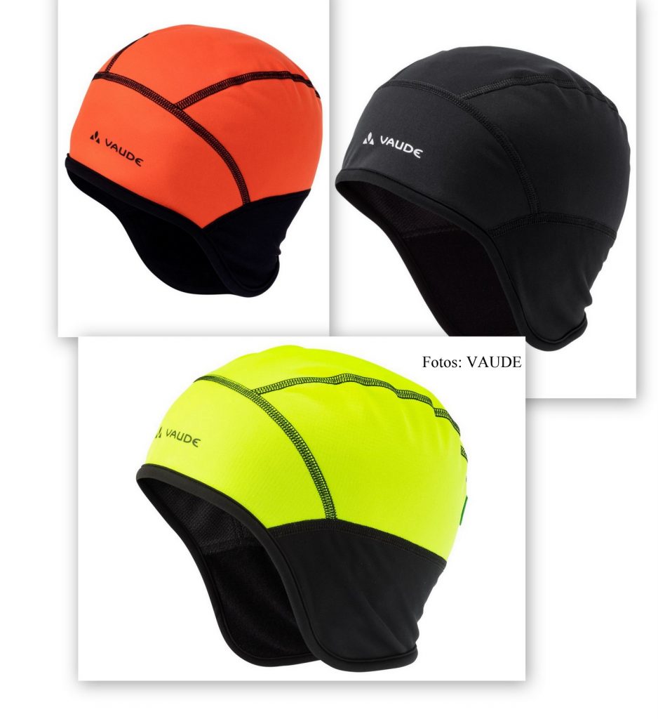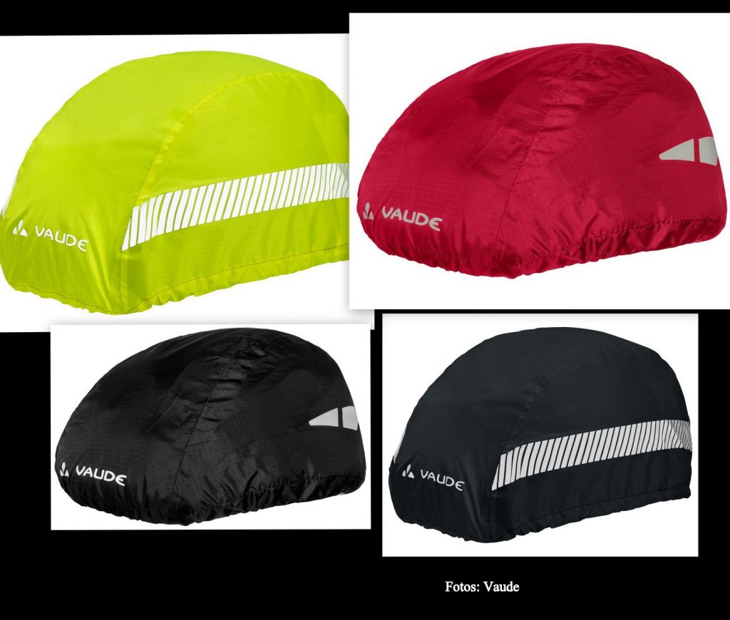 Der Helm ist für das Radfahren mittlerweile selbstverständlich, im Herbst und Winter sind hier aber doch eine Helmmütze und eventuell ein Regenschutz für den Helm sinnvoll. Die Helmmütze wird unter dem Helm getragen, ist relativ dünn, innen mit Fleece-Material ausgestattet, windabweisend oder winddicht, atmungsaktiv und bedeckt auch die Ohren. Der Regenschutz wird außen über den Helm gezogen, ist wasserdicht und auch ein sehr wirksamer Windschutz und in einer Signalfarbe immer auch ein zusätzlicher Sicherheitsaspekt; hier lohnt es sich, bei den vielen angebotenen Helmüberziehern auf das Prädikat „wasserdicht“ zu achten.