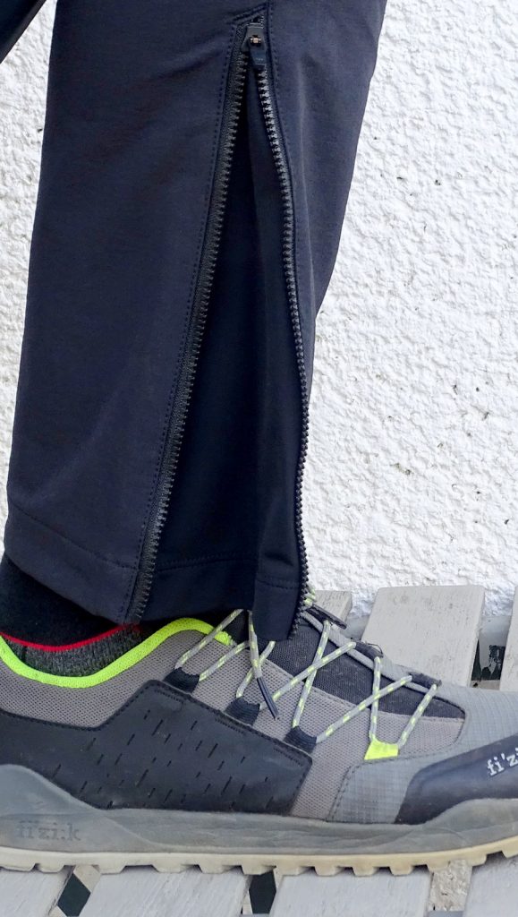Die Hose ist leger geschnitten und lässt noch Platz für z. B. eine lange Funktionsunterhose bei tiefen Temperaturen. Das Venturi soft shell Material trägt sich angenehm auf der Haut und hat trotz der Atmungsaktivität eine leicht isolierende Funktion. Die Hose trägt nicht stark auf, bei tiefen Temperaturen – 5° Celcius und kälter – passt immer noch locker eine knielange, isolierende Überziehhose drüber, die bei Bedarf auch schnell ausgezogen werden kann.