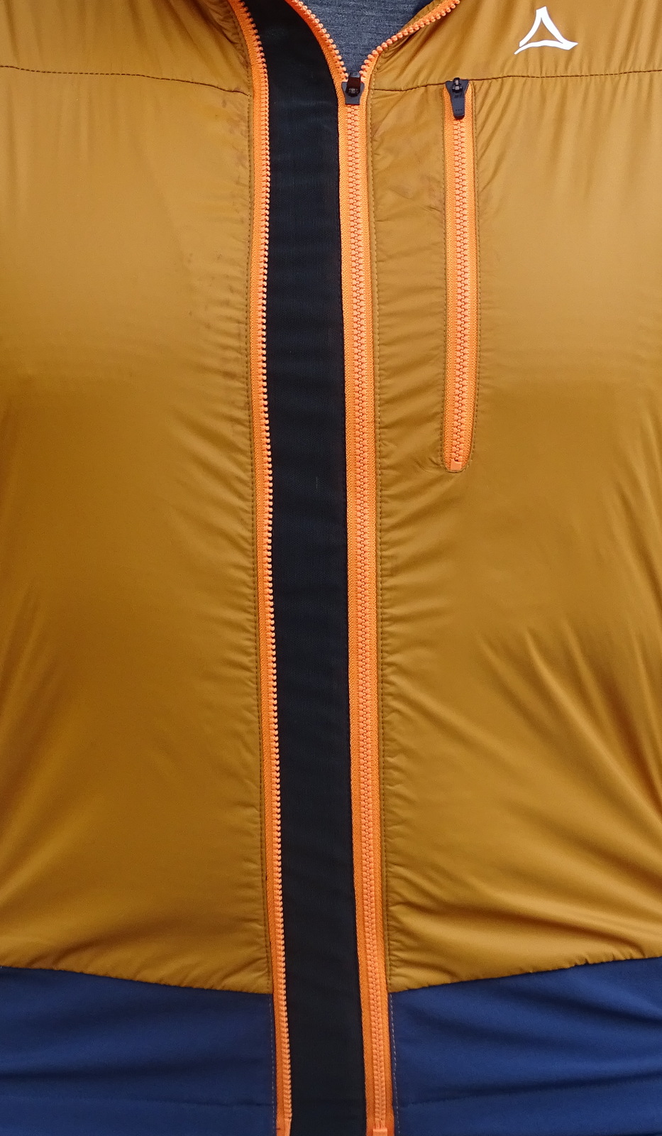Die Jacke sehr gut und aufwendig verarbeitet, die unterschiedlichen Materialien sind genau an den passenden Stellen platziert; einerseits als Winschutz, gut isolierend und trotzdem atmungsaktiv, andererseits am Rücken und unter den Armen sehr elastisch und atmungsaktiv. Ein sehr durchdachten Konzept mit überzeugender Wirkung. Der sog. Airstream-Zipper, die gut schließenden Armelstulpen und die beflockte Beschichtung der Innenseite der isolierenden Jackenteile sind Teil dieses gelungenen Konzeptes.