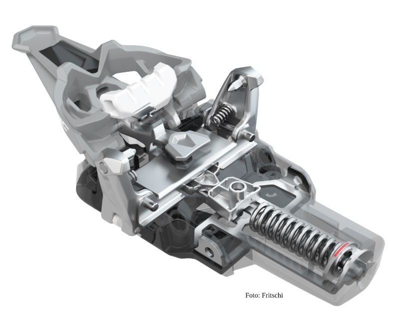 - Frontalauslösung hinten, +zuverlässige Auslösung über einen Längenausgleich von 10 mm für den durchgebogenen Ski