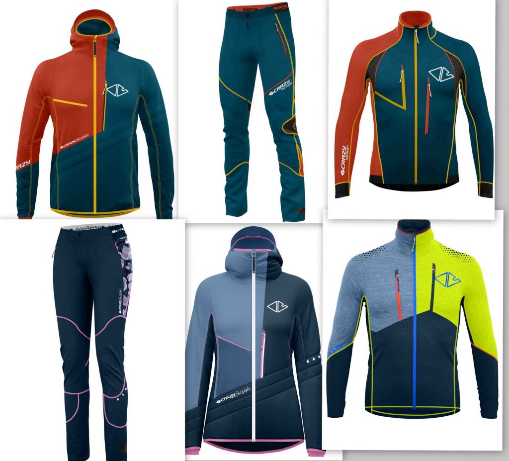Seit 1998 ist die italienische Bersportbekleidungs – Firma CRAZY mit sportlicher Bekleidung für Sskitouren, Hochtouren und andere intensive Bergsport-Aktivitäen auf dem Markt. SAZ: „Mit dem Konzept „Fast&Light“ setzt die italienische Marke Crazy Idea auf leichte, aber dennoch leistungsstarke Bergsportbekleidung für alle, die schnell, sportlich und ambitioniert in den Bergen unterwegs sein wollen.“