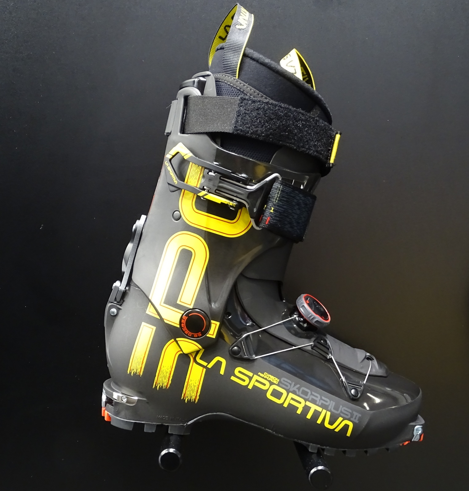 Bei der Auswahl der Materialien wurde darauf geachtet, den Planeten entlang der Re-Source-Kriterien von SCOTT zu schonen. Um Kunststoffe auf Erdölbasis zu vermeiden, sind große Teile des Stiefels biobasiert hergestellt: 92 Prozent der Kunststoffteile sind aus Pebax® Rnew®. SCOTT hatte mit diesem Material bereits in ihrer Re-Source-Hardware-Kollektion gearbeitet und es hat sich auch für Skischuhe als gut und haltbar erwiesen. Pebax® Rnew® ist ein biobasiertes Material, das in Frankreich aus Rilsan-Öl und Rizinusbohnen aus Indien hergestellt wird. Der Strap besteht zu 100 Prozent aus recycelten Materialien, das Futter des Innenschuhs ist ebenfalls zum Teil aus recyceltem Material und das Bootboard wurde auf Kork umgestellt.“