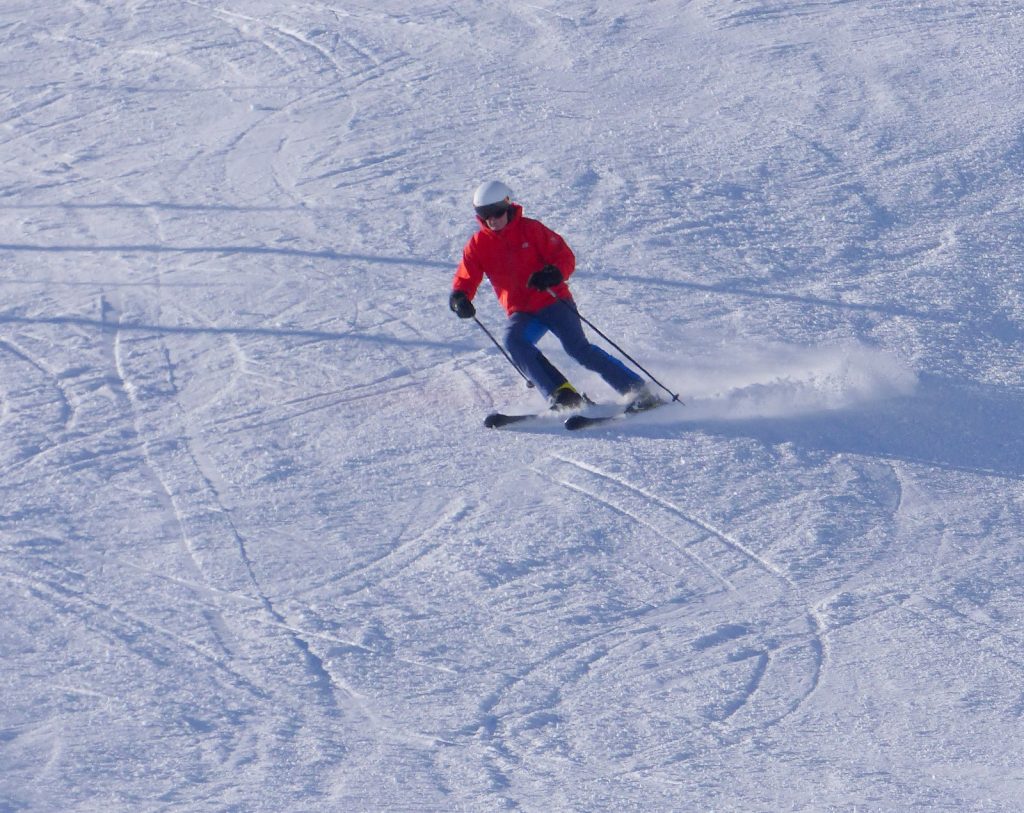 Klar, das funktioniert natürlich nur mit „sauberer“ Technik, mit dynamischem Umkanten, mit Kniearbeit (Skifahren ist Kniefahren!); aber wenn die Technik stimmt, dann ist das schon ein faszinierendes Bewegungserlebnis.