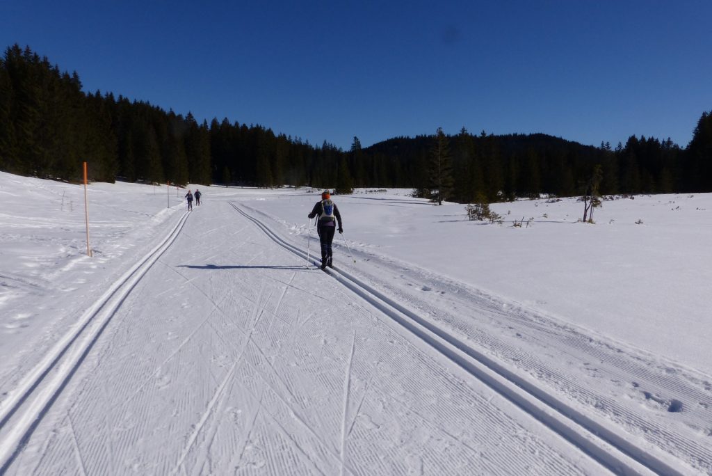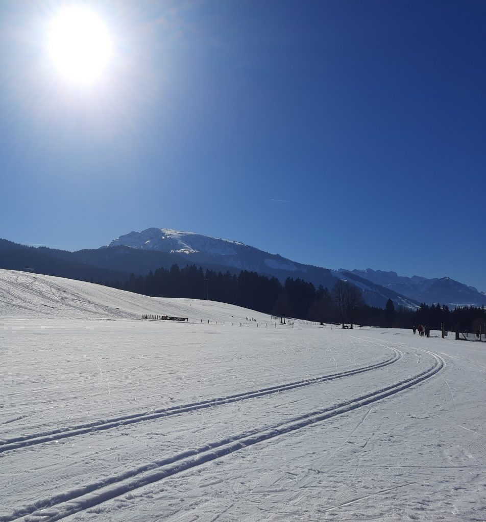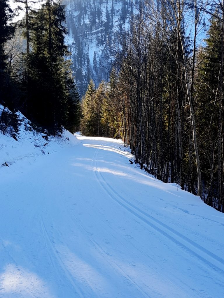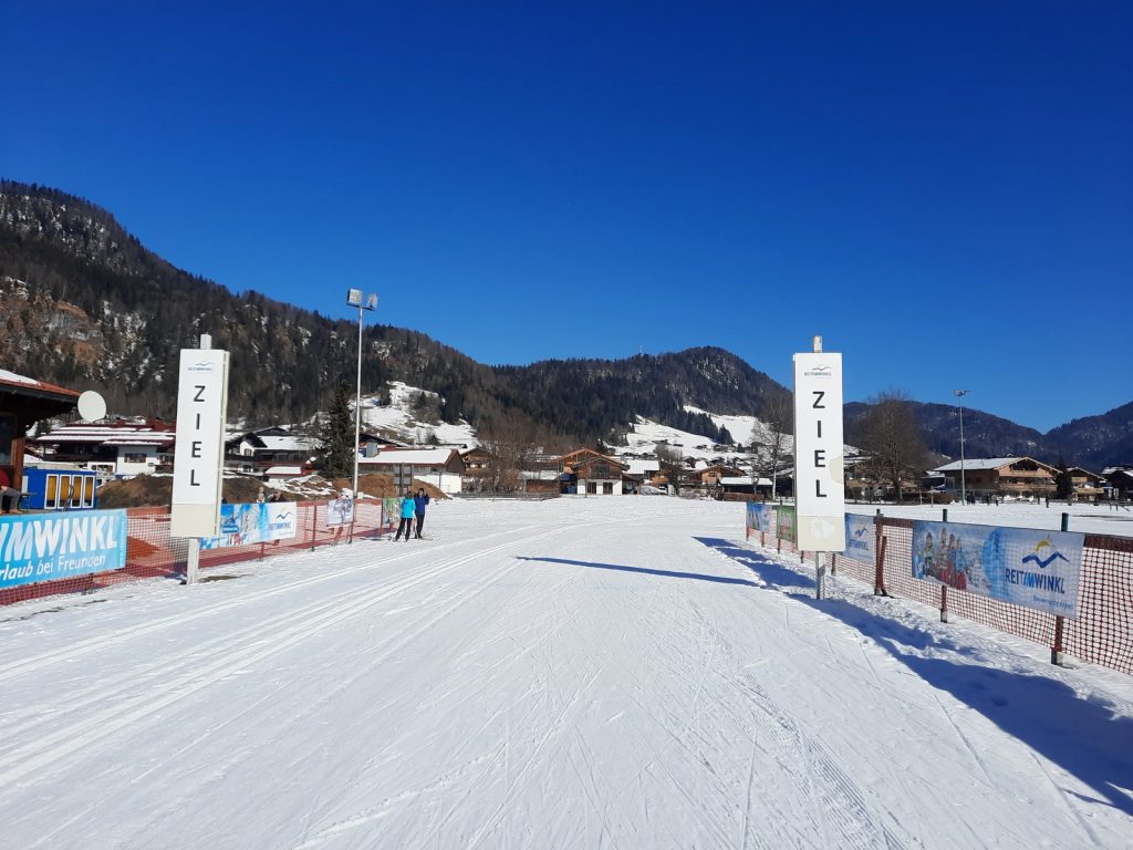 Aufgrund der Schneelage waren für uns aktuell nur einige Loipen um das Langlaufstadion – Fluftlicht-, Wellness- und Sonnenloipe – und ein Teil der Chiemgauloipe im Tal von Reit nutzbar; auf den anderen Loipen im weitläufigen Tal waren immer wieder Teilstrecken, die im Wald verlaufen, vereist oder mit Nadeln verschmutzt. Die nutzbaren Loipen warendann aber insgesamt sehr schön zu laufen, breit angelegt und trotz der knappen Schneelage sehr gut gepflegt. Das Langlaufstadion ist mit seien Übungsloipen, Toiletten, Sitzmöglichkeiten und Parkplätzen immer wieder ein gelungener Start- und Zielpunkt für Langläufer. Reit im Winkl ist nicht ohne Grund eines der schönsten Langlaufgebiete Bayerns.