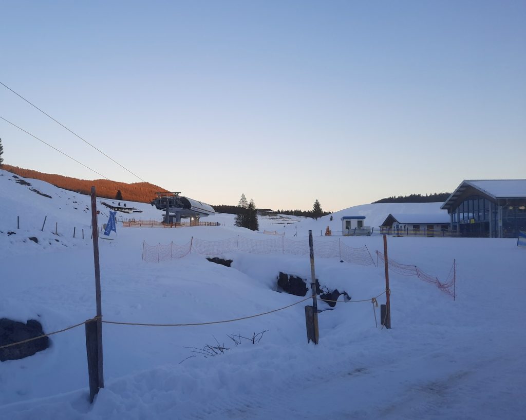 Auf der Winklmoos Alm war die Schneelage dann aber deutlich besser, oben war noch alles gut gespurt, die Abfahrten des Skigbeietes Winklmoosalm – Steinplatte waren dick mit Schnee bedeckt und auch die Abfahrt nach Segatterl sowie die stängig gewalzte Aufstiegsspur von Seegatterl zur Alm war in tadellosem Zustand. Die Höhenlage ist ein absolutes Plus und die Alm wird als Langlaufgebiet eigentlich viel zu wenig genutzt,