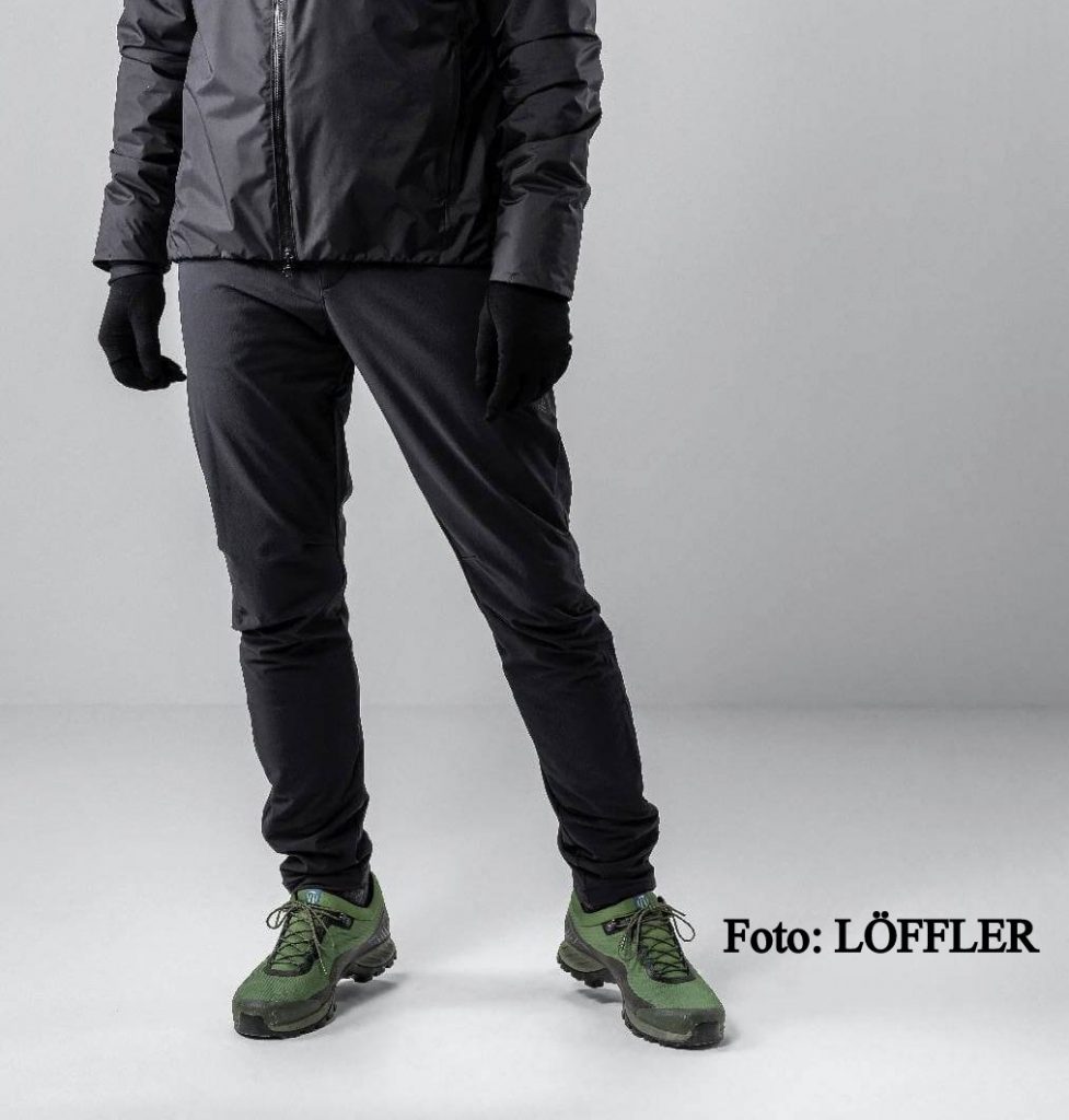 Ein sehr bequeme, aber auch nicht zu weite Funktionshose für Herbst und Winter; bei richtig kaltem Wetter kann gut noch eine kurze Isolationshose übergezogen werden.