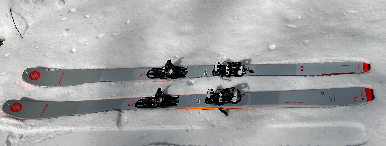 Unsere Tourenkombi bestand neben dem Maestrale aus dem Blizzardski Ski ZERO G 85 mit der Markerbindung Alpinist 10; der Ski i 171cm Länge,115-85-99, R 21,5, dazu die passenden Felle von POMOCA..