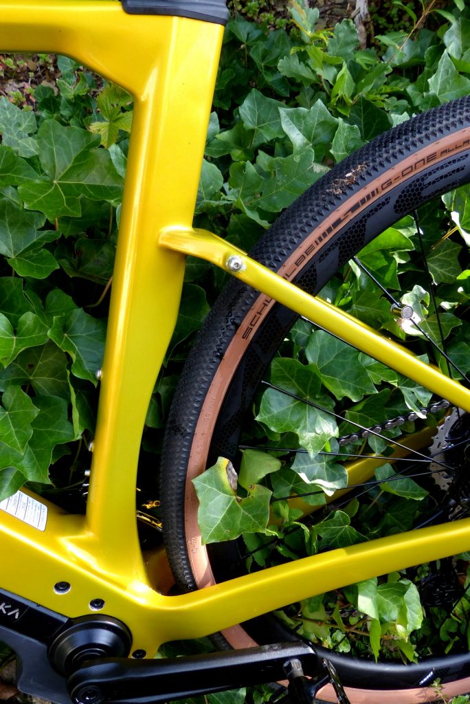 Im Rahmen ist auch Platz für Schwalbes 45 mm Reifen