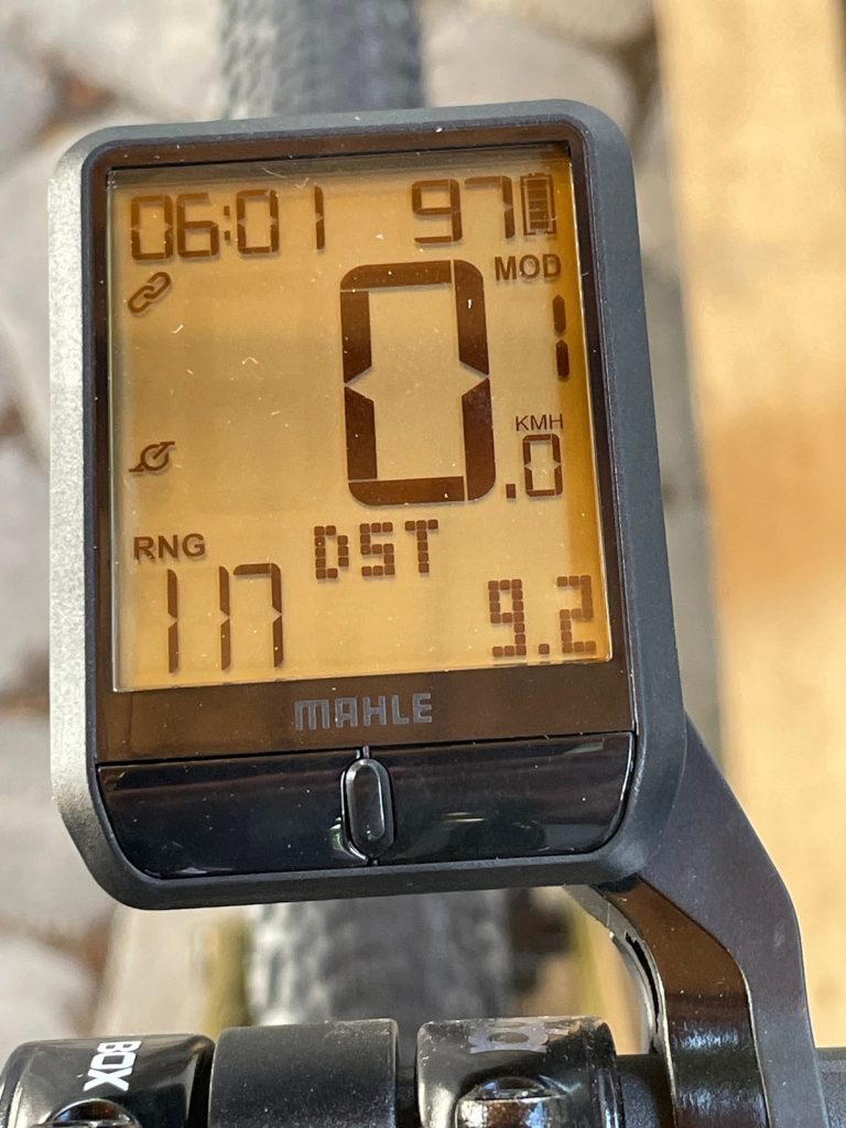 Bei der Bedienung setzt Mahle weiterhin auf das System mit einer im Oberrohr integrierten Bedieneinheit. Hier wird der Motor gestartet, man wählt die gewünschte Unterstützungsstufe, erkennt den Ladezustand des Akkus. Ein im Display verbauter Helligkeitssensor regelt die Intensität der Lichtstärke auf Grundlage der Lichtverhältnisse der unmittelbaren Umgebung. Selbst bei Sonnenschein sind die Farben – weiß (Motor an), grün, blau oder violett je nach Unterstützungsstufe, gut erkennbar. Es gibt aber auch ein Display am Lenker, auf dem dann alle interessanten Daten ablesbar sind.