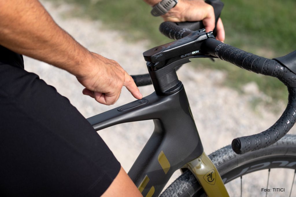 Die Fa. Titici ( Asola/Italien) hat bei diesem Rad nicht nur ein Straßenrad mit dickeren Reifen als Gravelbike deklariert, sondern einen Rahmen ( Vollcarbon-Monocoque T.E.C. ) entworfen, der auf die Bedürfnisse des „Gravelns“ ausgerichtet ist. Herzstück des handgefertigten Carbonrahmens ist das patentierte PAT (Plate Absorber Technology ) Oberrohr. Es reduziert Vibrationen bis zu 18% mehr als ein Standardrohr, ohne die Torsionssteifigkeit zu beeinträchtigen. Mit dem patentierten PAT-Design ist der Dynamica-Rahmen sowohl für unwegsames Gelände als auch für Straßen ausgelegt – Rennsport-Performance kombiniert mit erhöhtem Komfort.