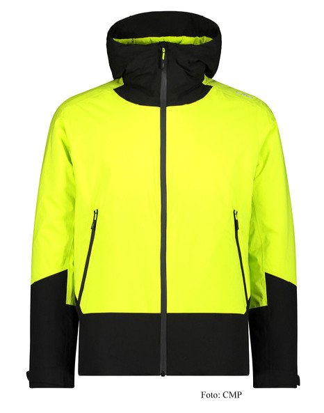 Jacke, die Funktionalität und Design kombiniert, um eine umfassende Lösung für Wintersportbegeisterte zu bieten. Die Clima Protect Thermo Laminate, vollständig versiegelten Nähte und die PFC-freie wasserabweisende Behandlung halten Wasser und Kälte fern. Darüber hinaus verhindert der integrierte Schneefang das Eindringen von Schnee und hält den Körper warm und trocken. Mit seiner geringen Größe bietet die Feel Warm Flat Polsterung maximale Bewegungsfreiheit und konstante Wärme. Die feste Kapuze ist leicht verstellbar. Die mittige Öffnung ist mit einem durch eine Windschutzklappe verdeckten Reißverschluss und Druckknöpfen ausgestattet, die das Eindringen kalter Luft verhindern. Das Modell verfügt über vier Außentaschen mit Reißverschluss. Darüber hinaus gibt es eine unsichtbare Reißverschlusstasche am Ärmel. Die Lycra-Ärmelbündchen mit Fingerlöchern sorgen für zusätzliche Wärme und Komfort und können mit Klettverschluss individuell angepasst werden. Die Netzinnentasche und die Geheimtasche eignen sich ideal für größere Gegenstände, um persönliche Gegenstände sicher aufzubewahren.