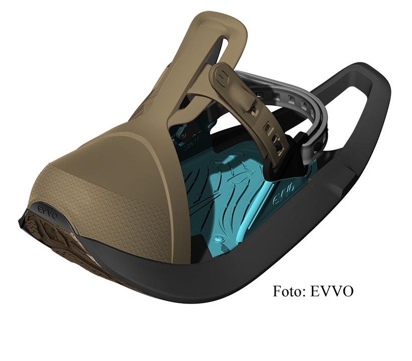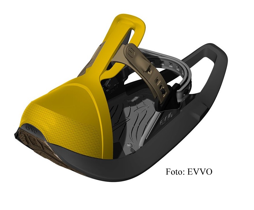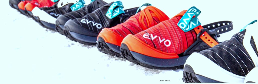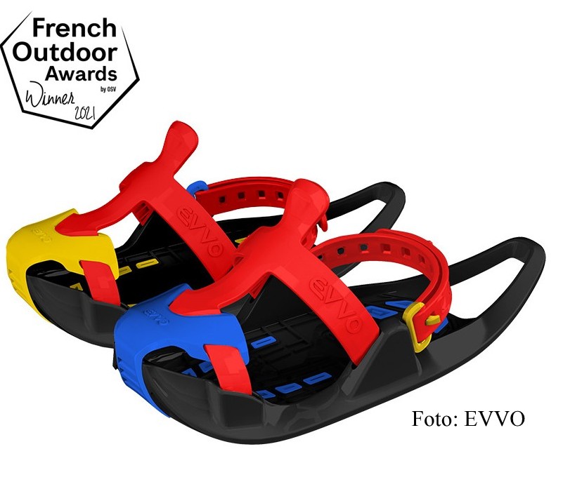 „Der EVVO Snowshoe ist eine 100% französische technische Innovation, die mitten im Regionalpark Pilat ihren Ursprung hat und sich an alle richtet, die den Schnee lieben. Gegründet wurde die Marke 2017 auf Betreiben von Hervé Piron und Joël Varaine, beide Geschäftsführer des lokalen, auf Kunststoffspritzguss spezialisierten Unternehmens MPI, zusammen mit dem sportbegeisterten Designer Olivier Reboullet . … EVVO markiert einen neuen Meilenstein in der Geschichte des Schneeschuhs: Ein neuartiger, leicht überzuziehender, textiler Überschuh, der den Fuß schützt und angenehm warm hält. Ein intuitives Verstellsystem, das eine einfache Anpassung an alle Arten von Schuhen ermöglicht.“