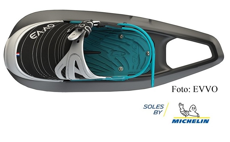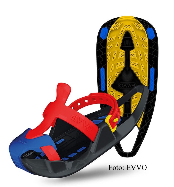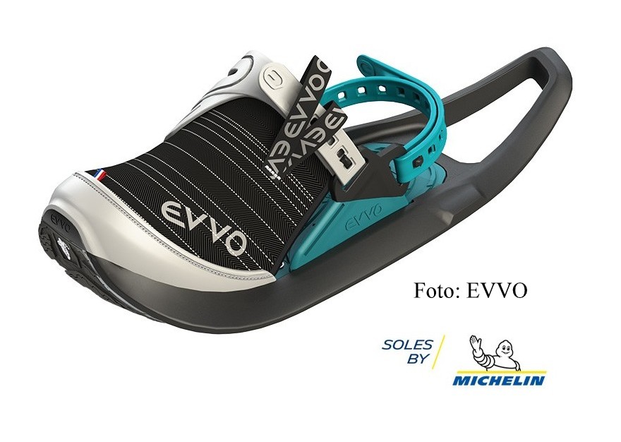 „Als eine neuartige Alternative zu traditionellen Schneeschuhen sind die EVVO-Schneeschuhe ein Konzentrat an Technologie, das eine noch nie dagewesene Bewegungsfreiheit im Schnee bietet. Die Schneeschuhe verfügen über eine einzigartige, leichte und leise Sohle aus 100% Gummiy welche in Zusammenarbeit mit Michelin entwickelt. Die einzigartige geometrische Architektur, inspiriert von Schnee- und Eisreifen, liefert optimalen Grip auf Schnee, Eis und Geröll. Der Überschuh aus innovativem MATRYX-Gewebe hält Deine Füße dank seiner wasserabweisenden und atmungsaktiven Eigenschaften trocken. Auch das DUAL SKIN-Futter bietet zusätzlichen Schutz vor Nässe. Der Aufbau der Sohle schützt Deine Füße gegen Kälte. Somit liefern die EVVO Schneeschuhe optimalen Komfort und Wetterschutz. Das Verstell-System ist super intuitiv und erleichtert die Anpassung an den Schuhtyp. Damit sind die Schneeschuhe mit vielen Schuharten kompatibel.“ UVP 179,- €