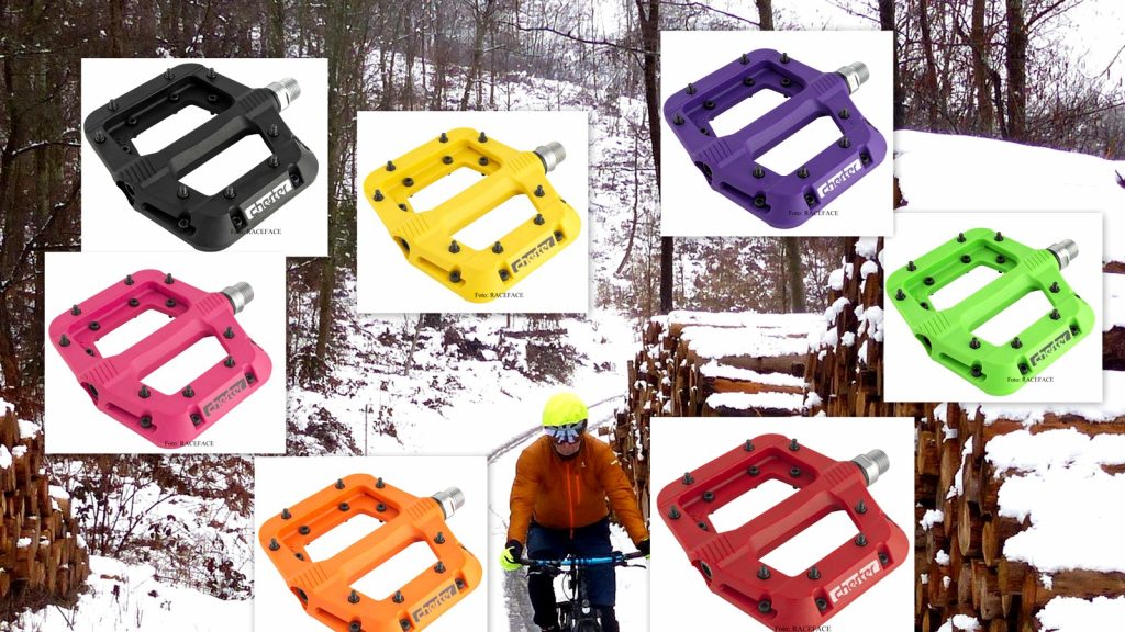 Wer im Winter relativ viel mit dem Rad unterwegs ist, sollte sich auf jeden Fall auf mal Gedanken für griffige Pedale machen. Sog. Flat Pedals kommen aus dem MTB Sport; eine relativ große Trittfläche (Plattform) und diverse kurze Pins auf der Trittfläche geben der Schuhsohle einen guten Halt und verhindern das Abrutschen vom den Pedal.