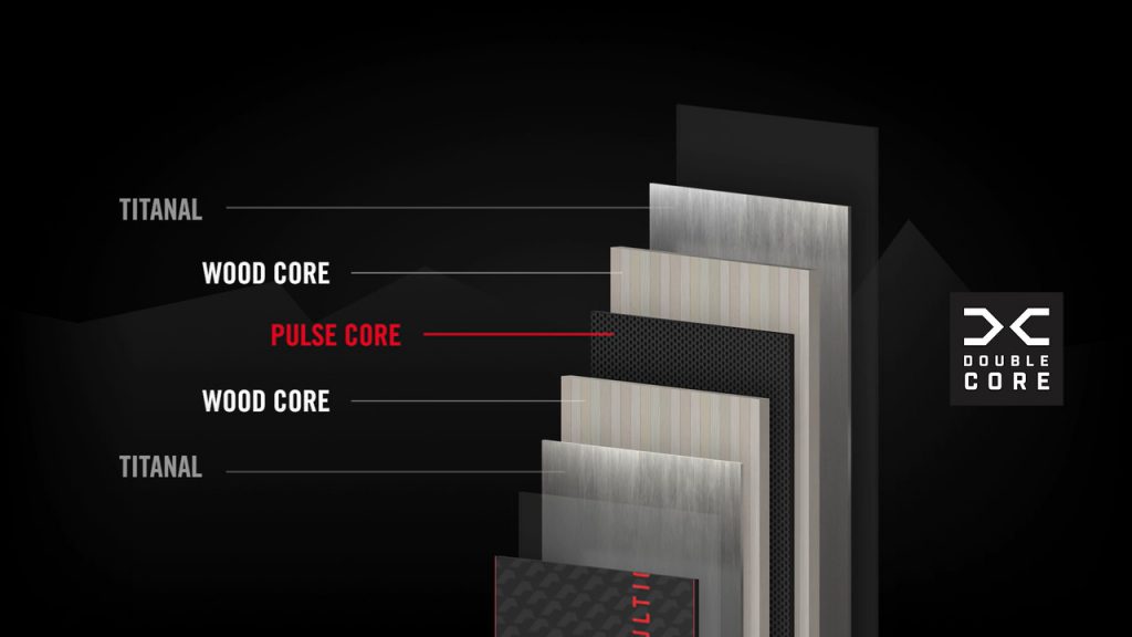 Bei 3 besonders sportlichen Skimodellen hat NORDICA jetzt diese DC Konstruktion mit 2 Titanalschichten kombiniert: NORDICA Energy 2TI DC Ski – „Der Energy 2 TI Double Core von Nordica hat eine Pulse Elastomerschicht zwischen zwei übereinanderliegenden Holzkernen integriert, die jeweils von einer Titanalschicht eingebettet sind. Das ist der Schlüssel für diese unvergleichliche Präzision und Response.„