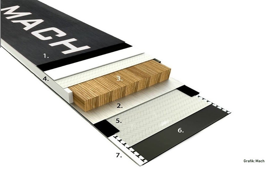 Die Basis aller sportlichen Spitzenski und damit natürlich auch aller Wettkampfski von Abfahrt bis Slalom und SkiCross ist der Holzkern, in Sandwich-Bauweise kombiniert mit 1 oder 2 Titanalschichten oder 1 Titanal- und 1 Carbonschicht; der Holzkern ist unterschiedlich dick, wird bei einigen Modellen am Ende und zur Spitze hin etwas dünner, aber es ist immer ein Holzlaminat aus Esche und/oder Buche, z. T. auch noch Okume´.